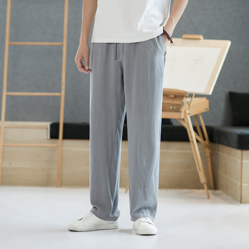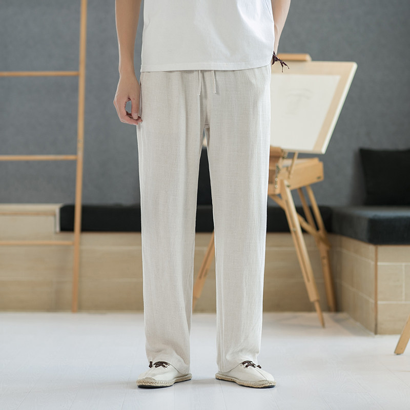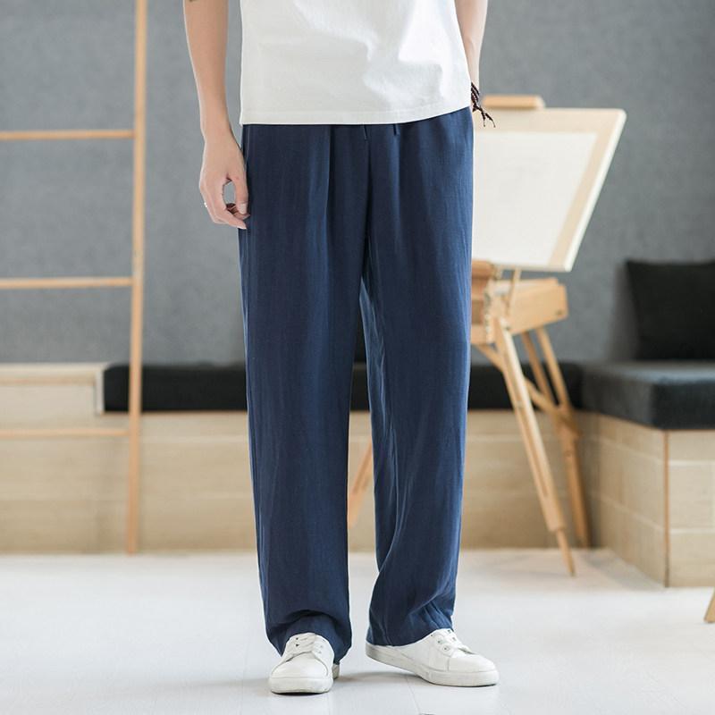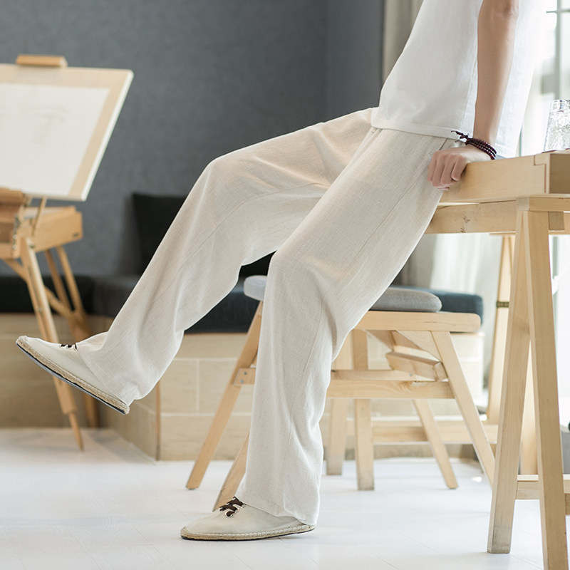Весенние тонкие штаны, свободный прямой крой, китайский стиль, из хлопка и льна