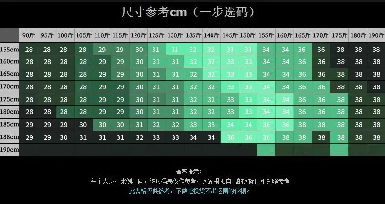 | Размер: | 28 Рекомендуется [90-105 Catties], 29 Рекомендуется [106-115 Catties], 30 рекомендуется [116-120 Catties], 31 рекомендуется [121-130 Catties], 32 Рекомендуется [131-140 Catties], 33 Рекомендуется [141-150 Catties], 34 Рекомендуется [151-160 Catties], 36 Рекомендуется [161-170 Catties], 38 Рекомендуется [171-190 Catties] |