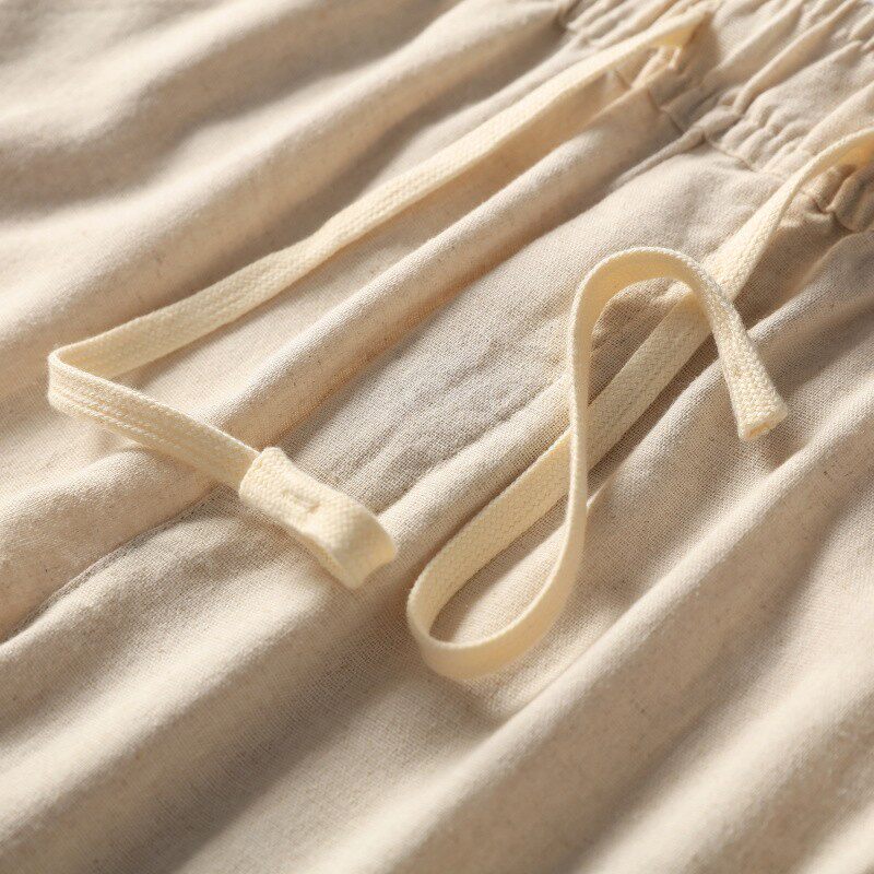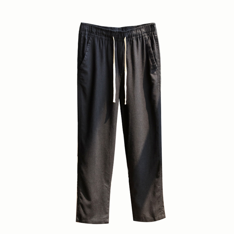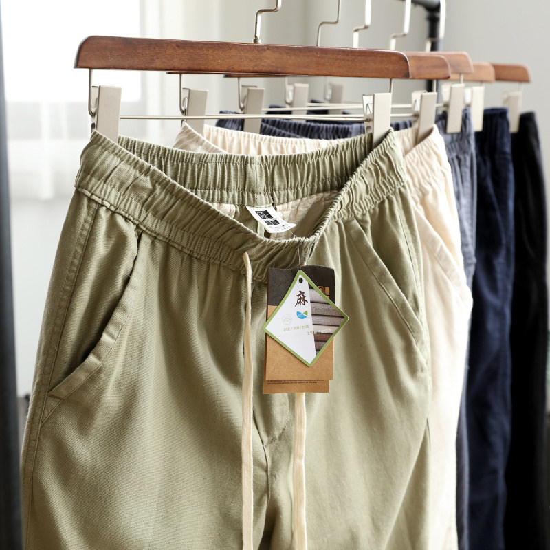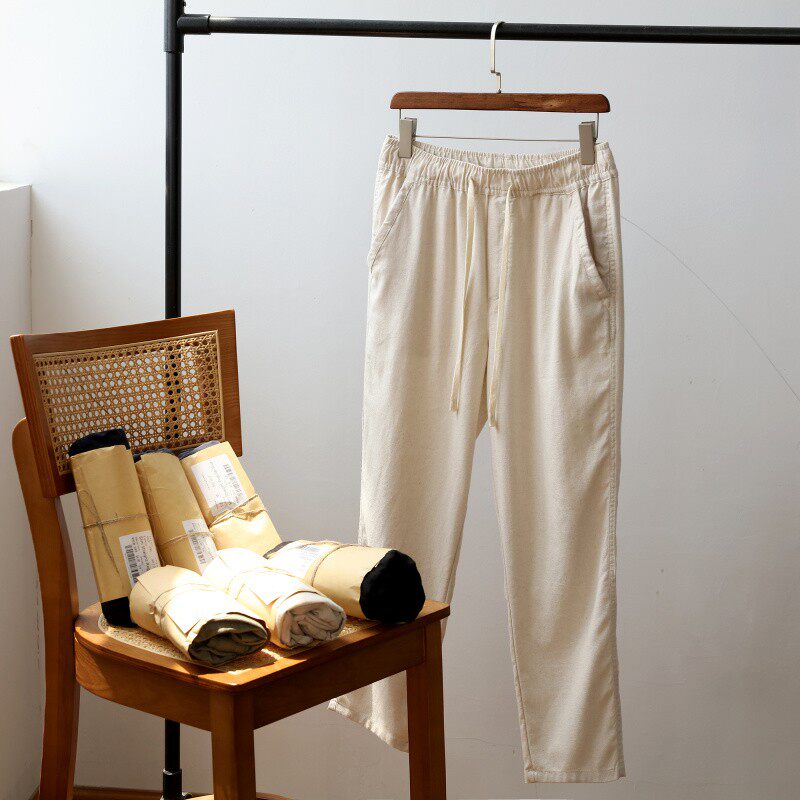 Прохладные дышащие летние модные штаны, из хлопка и льна, эластичная талия, свободный прямой крой
