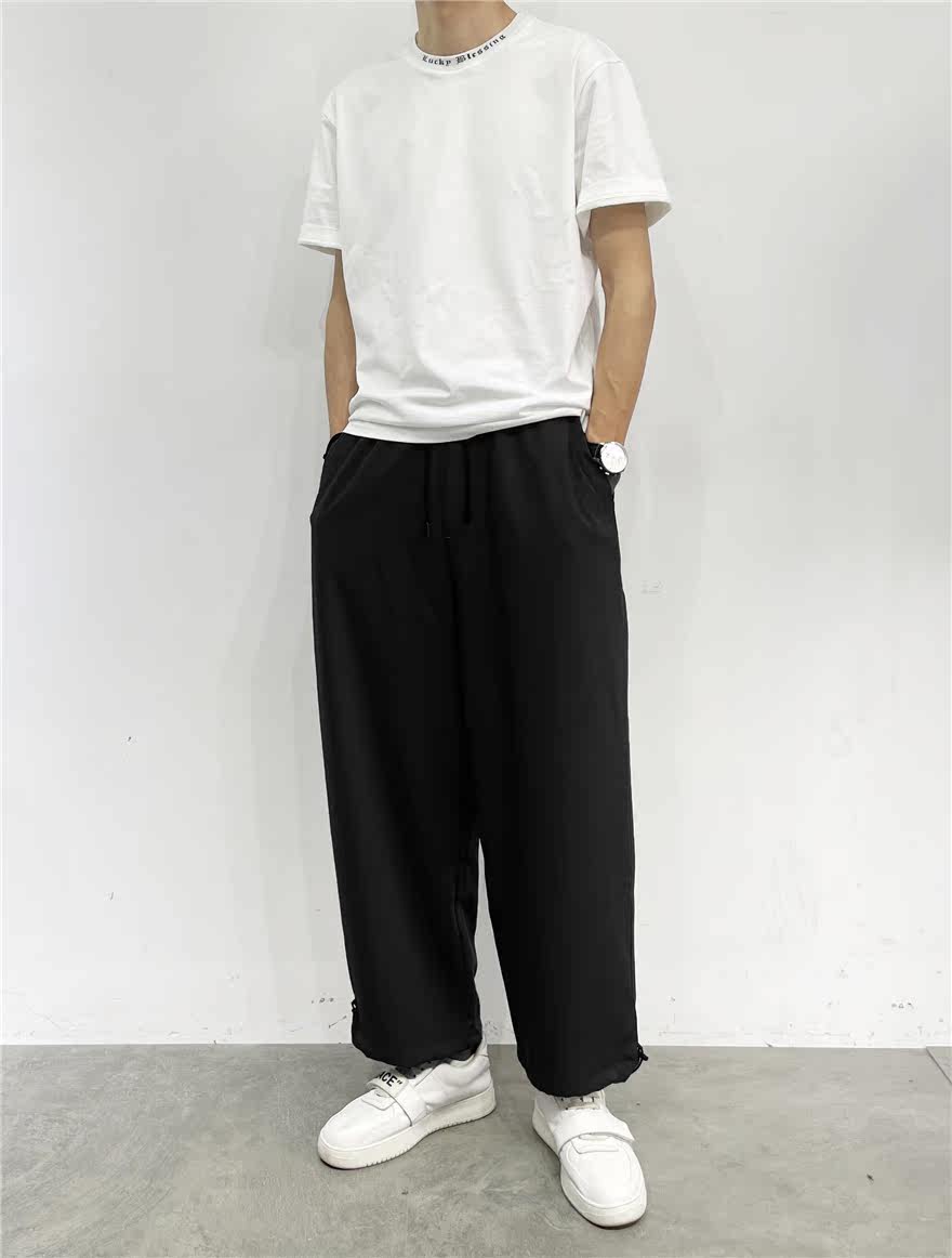 Летние тонкие черные штаны, эластичная талия, свободный прямой крой