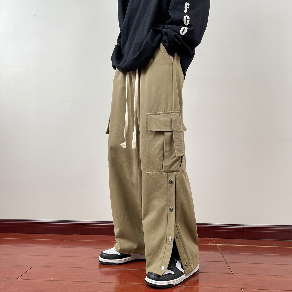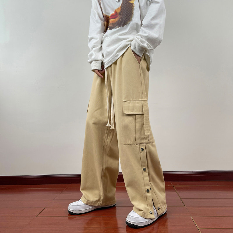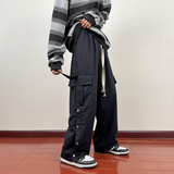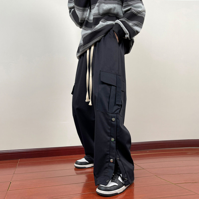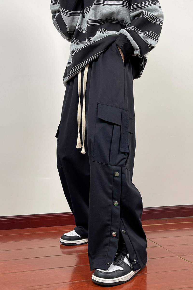 Японские штаны, повседневные брюки, оверсайз, свободный прямой крой