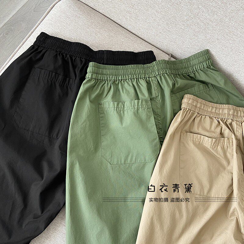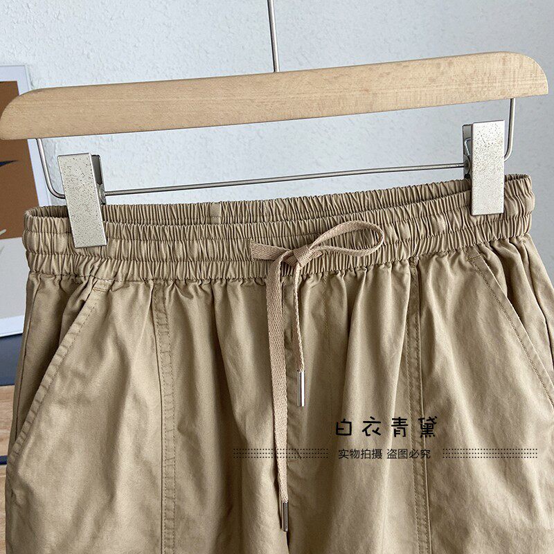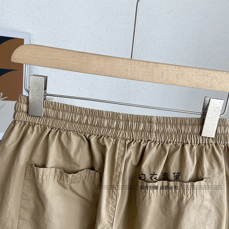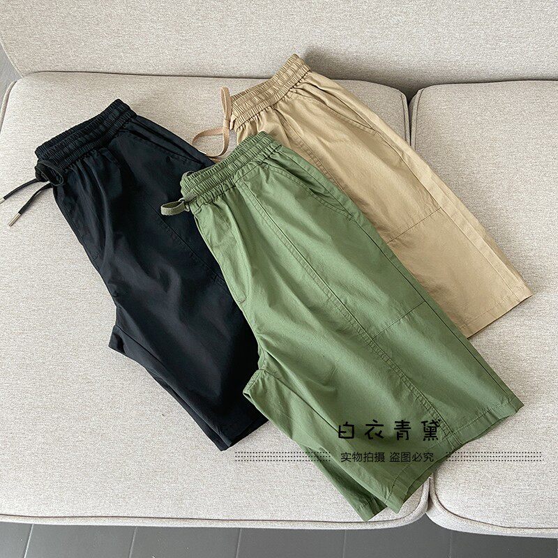 Ретро комфортные дышащие летние базовые универсальные шорты, эластичная талия, свободный прямой крой