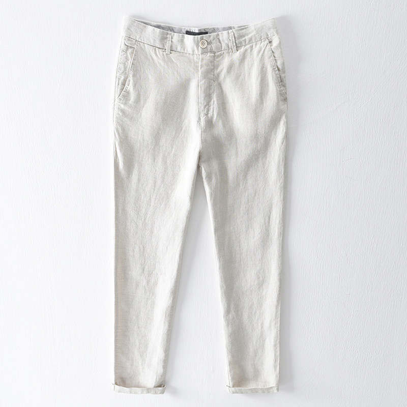 Летние тонкие цветные дышащие штаны для отдыха, Гонконг, из хлопка и льна, свободный прямой крой