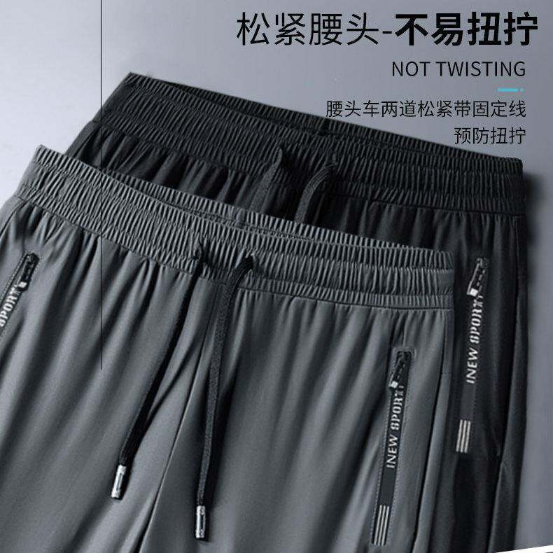 Мужские шелковые быстросохнущие летние тонкие высокие дышащие штаны для отдыха, свободный прямой крой, большой размер