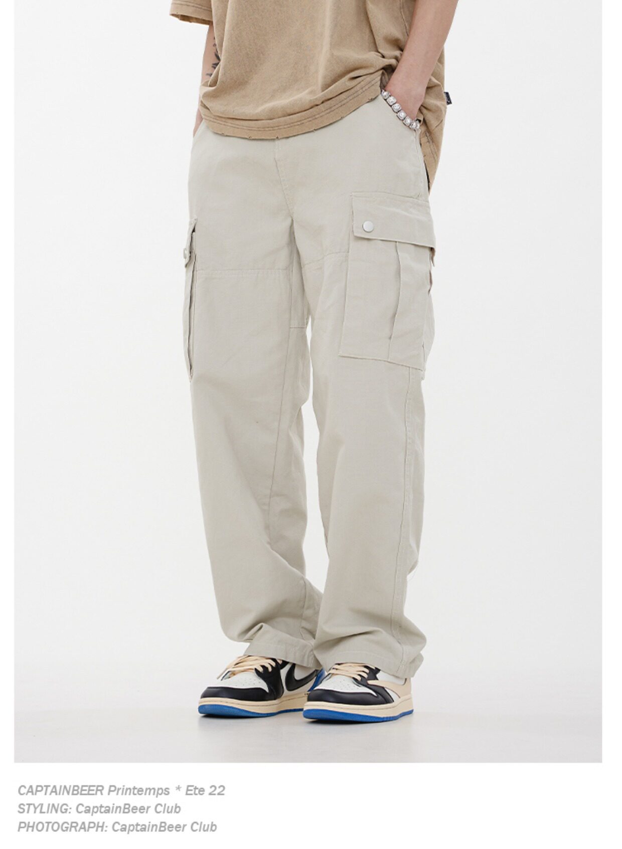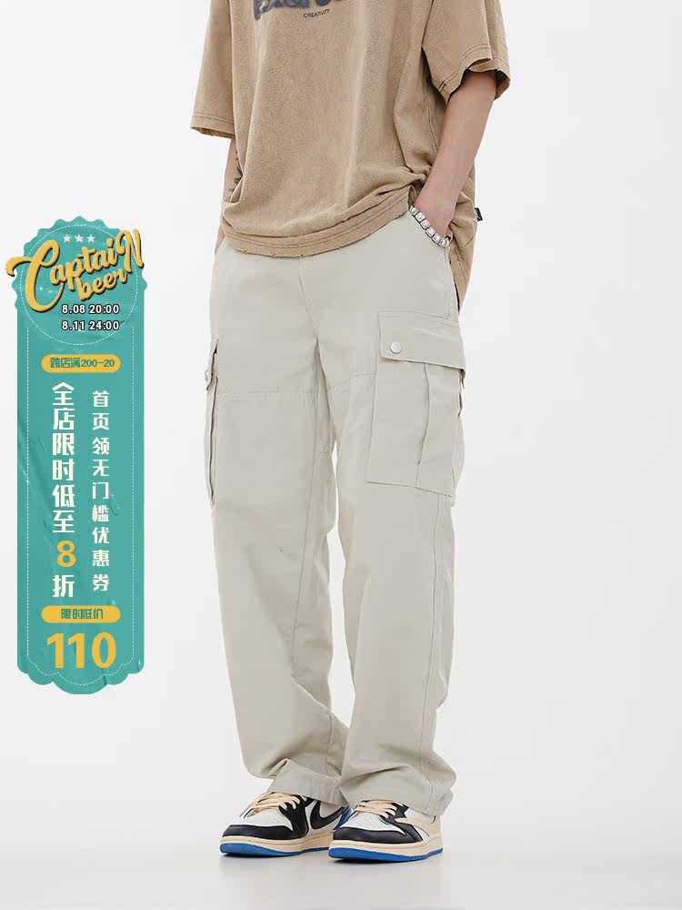 Captainbeer American Retro Ship Lose -Leg Mopping Pants Men's Tide Brand Big Pocket Casual Street Street