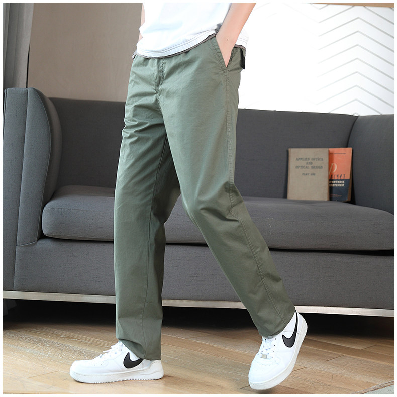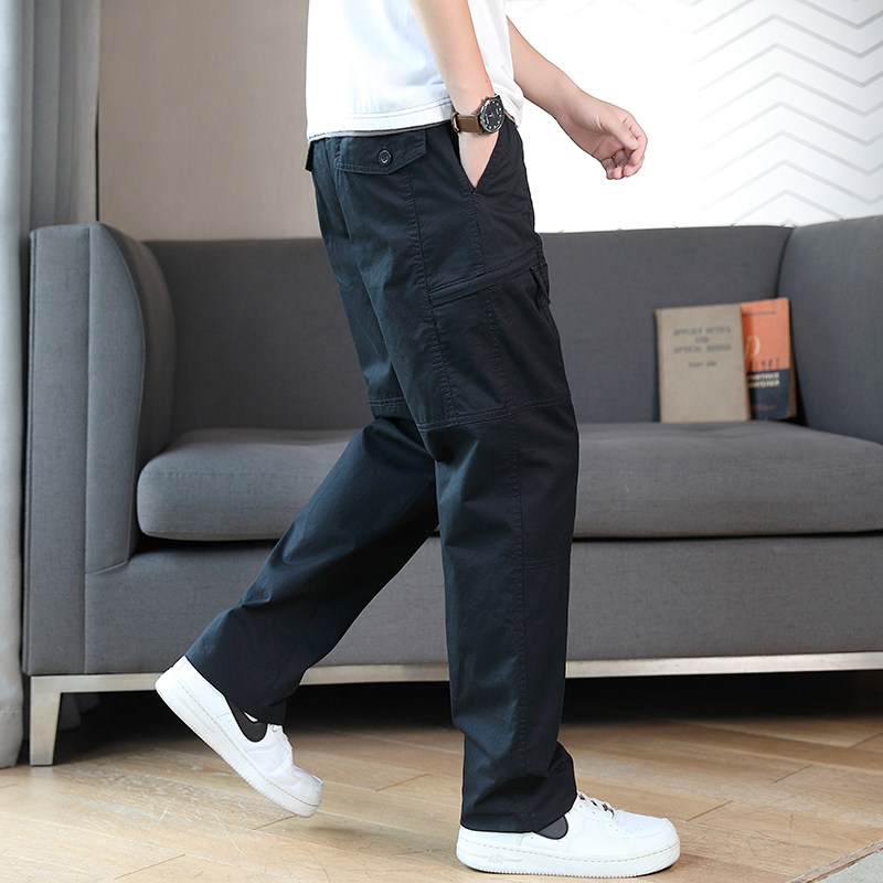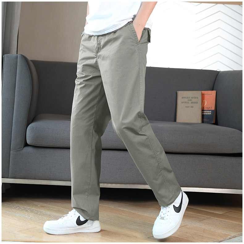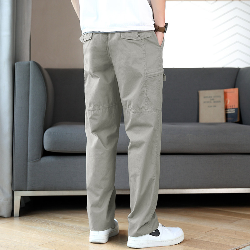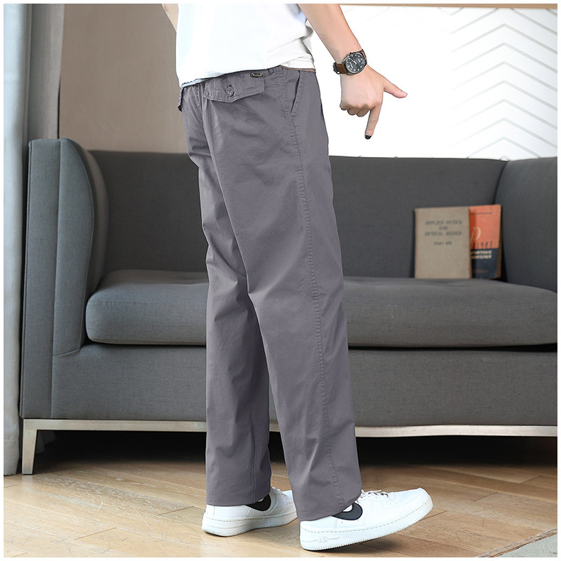 Осенние хлопковые штаны для отдыха, эластичная талия, свободный прямой крой