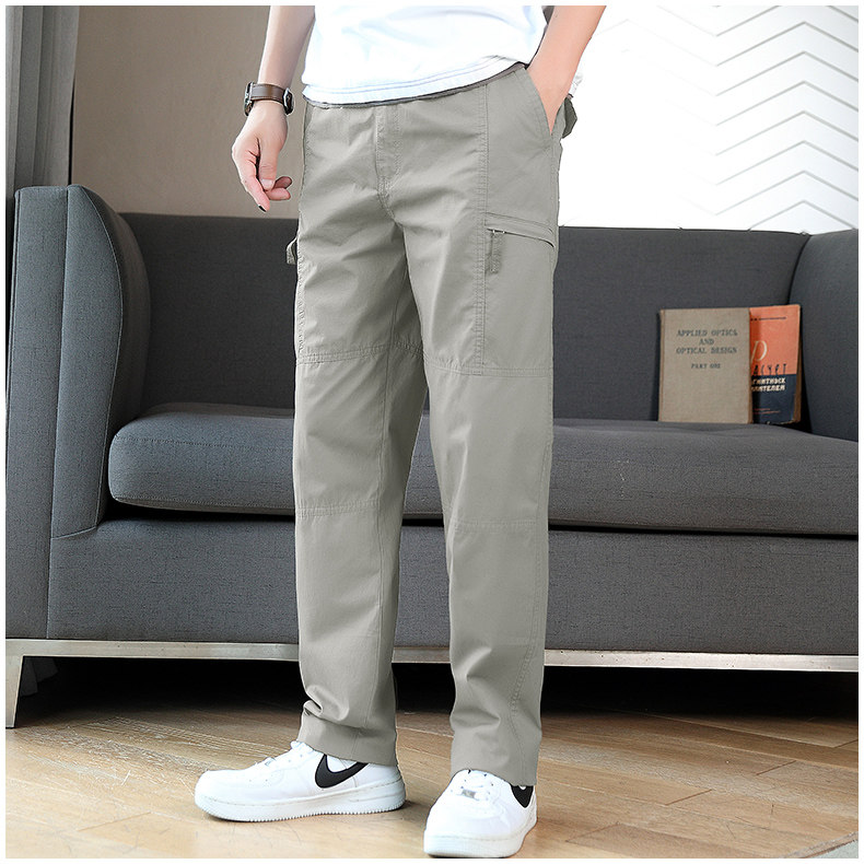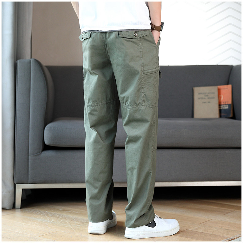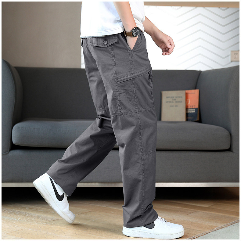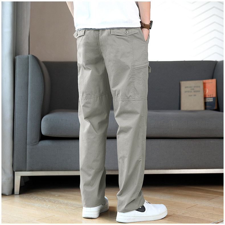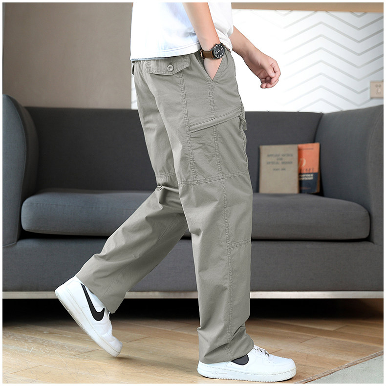 Осенние хлопковые штаны для отдыха, эластичная талия, свободный прямой крой