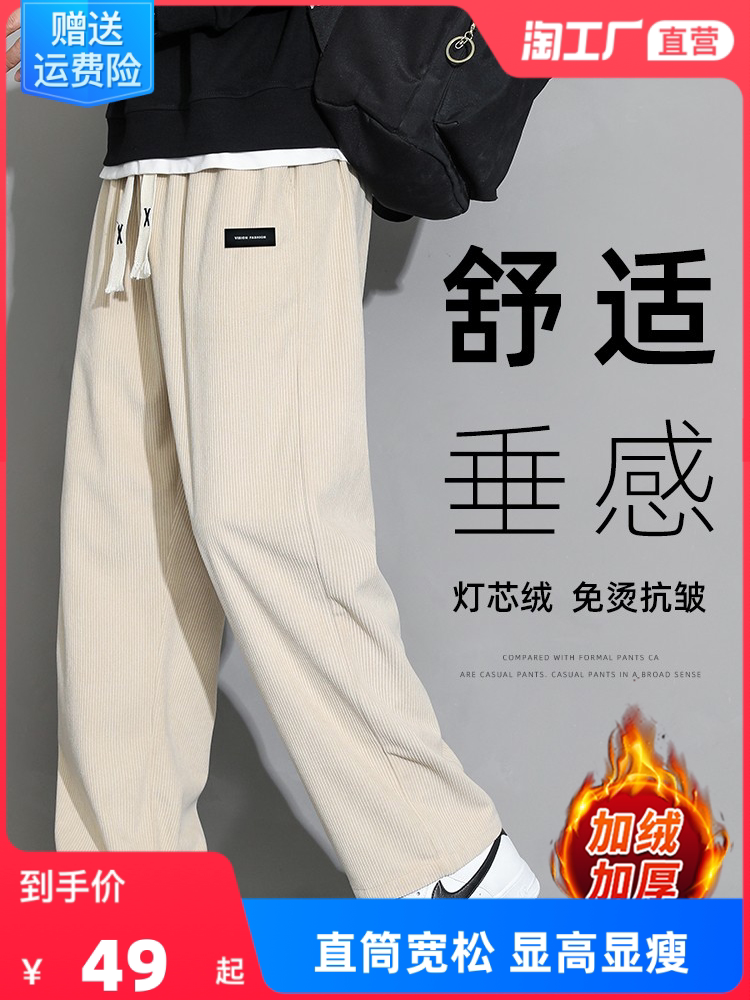 Мужские вельветовые демисезонные повседневные брюки для отдыха, утепленные штаны, свободный прямой крой