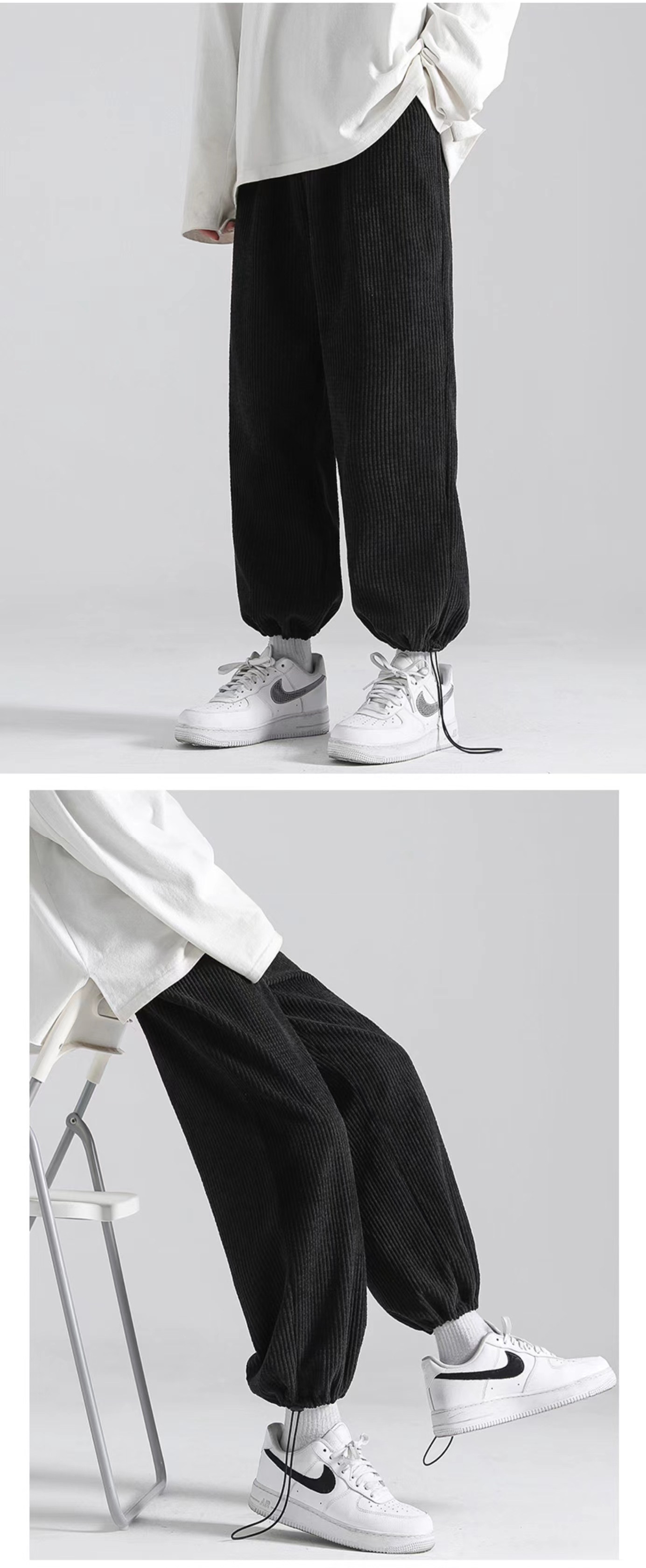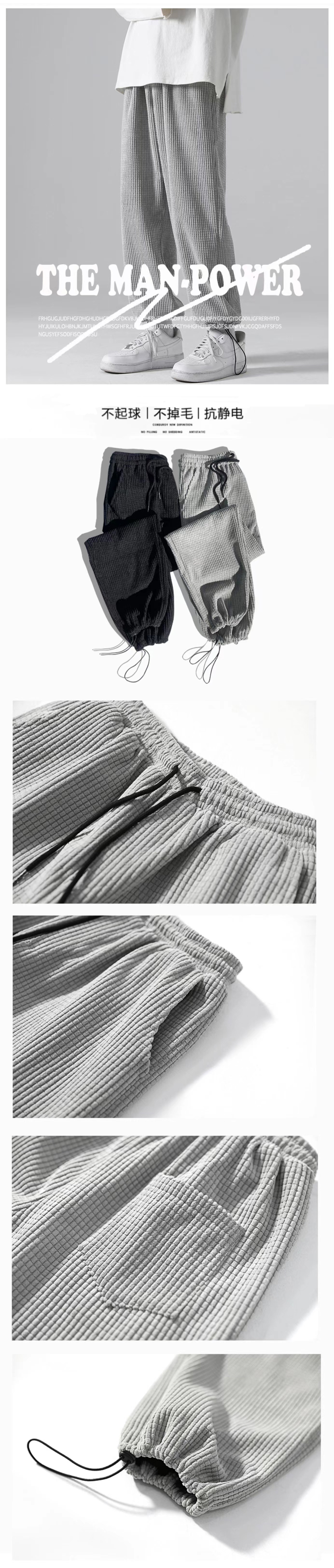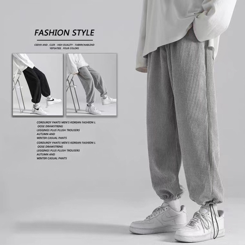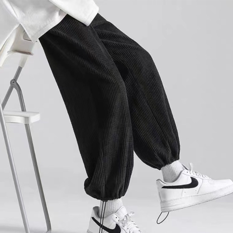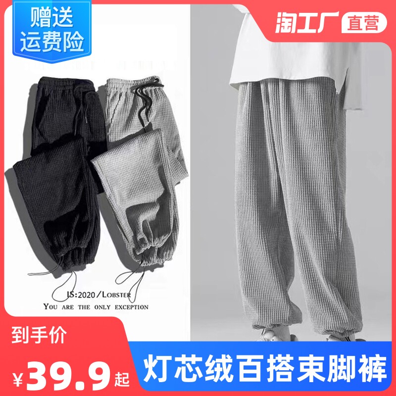 Вельветовый решетчатый светильник, спортивные штаны, эластичная талия, свободный прямой крой