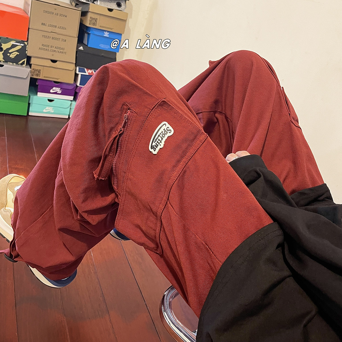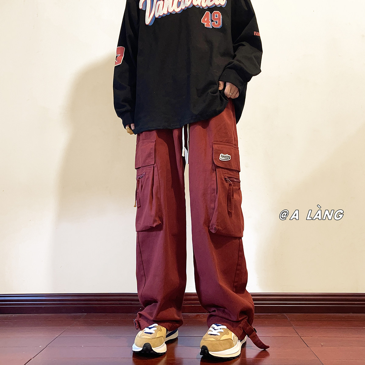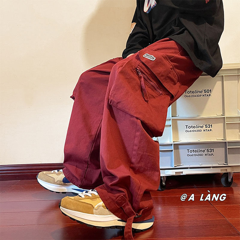 Брендовые бордовые штаны в стиле хип-хоп, в американском стиле, свободный прямой крой