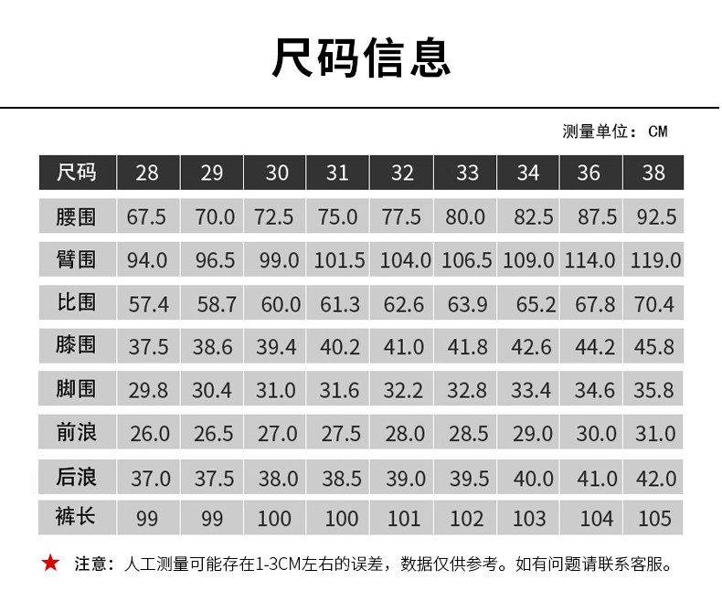 | Размер: | 28 Рекомендуется [90-105 Catties], 29 Рекомендуется [106-115 Catties], 30 рекомендуется [116-120 Catties], 31 рекомендуется [121-130 Catties], 32 Рекомендуется [131-140 Catties], 33 Рекомендуется [141-150 Catties], 34 Рекомендуется [151-160 Catties], 36 Рекомендуется [161-175 Catties], 38 Рекомендуется [176-220 Catties] |