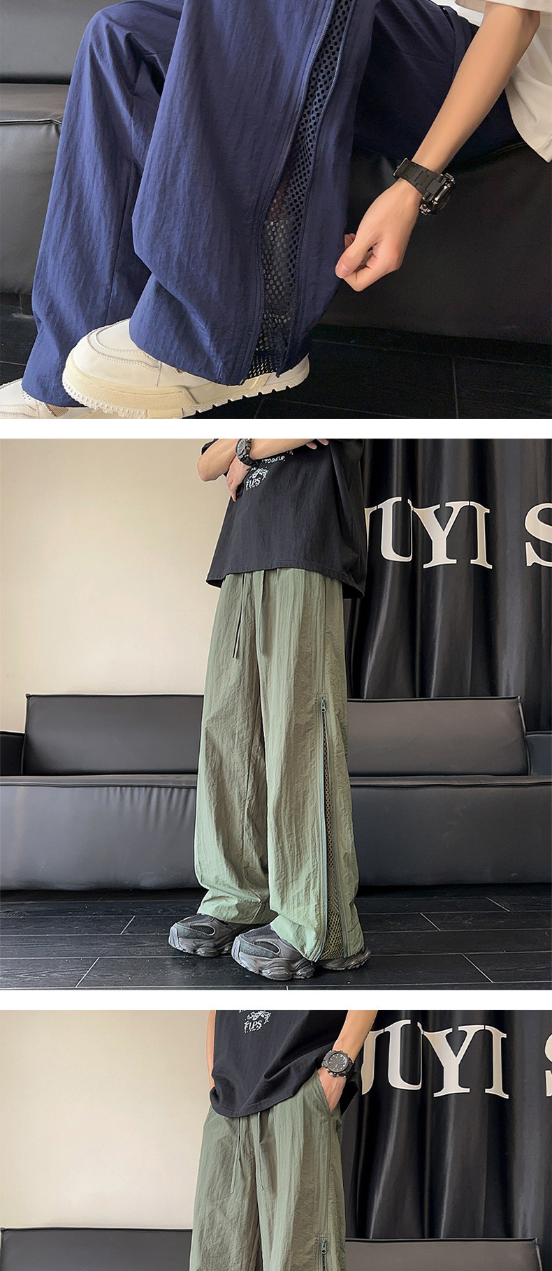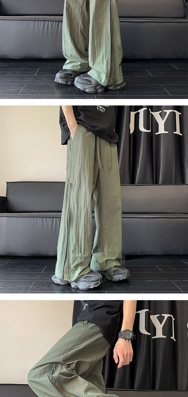 Летние тонкие зеленые штаны с молнией, изысканный стиль