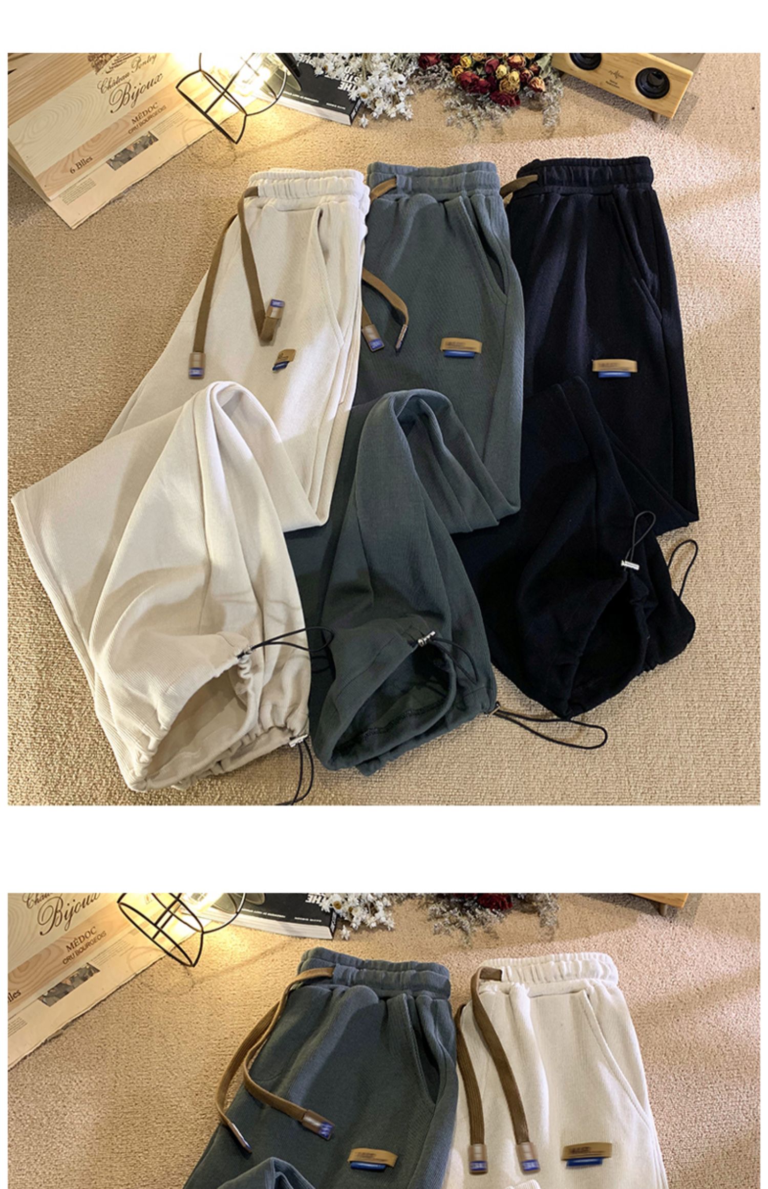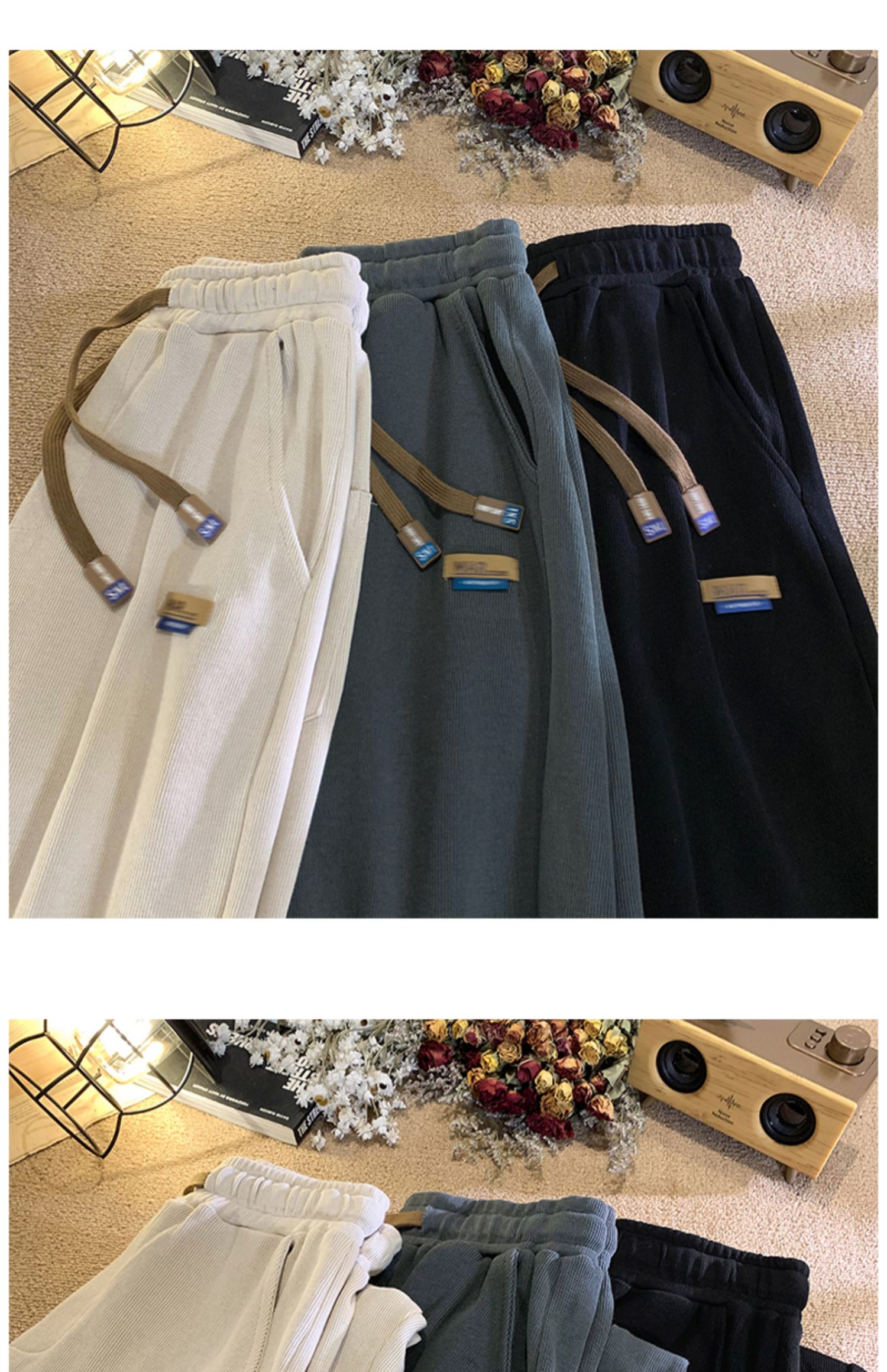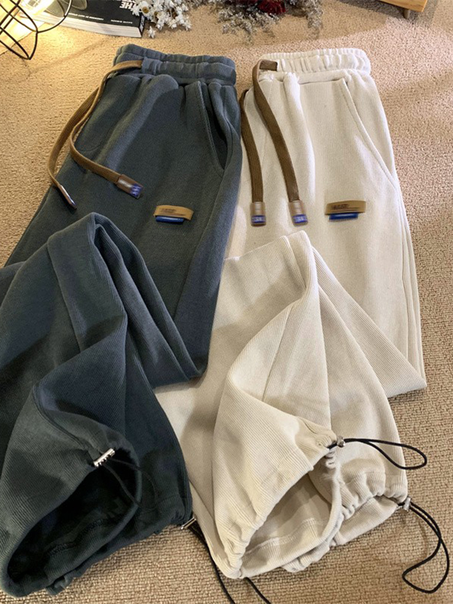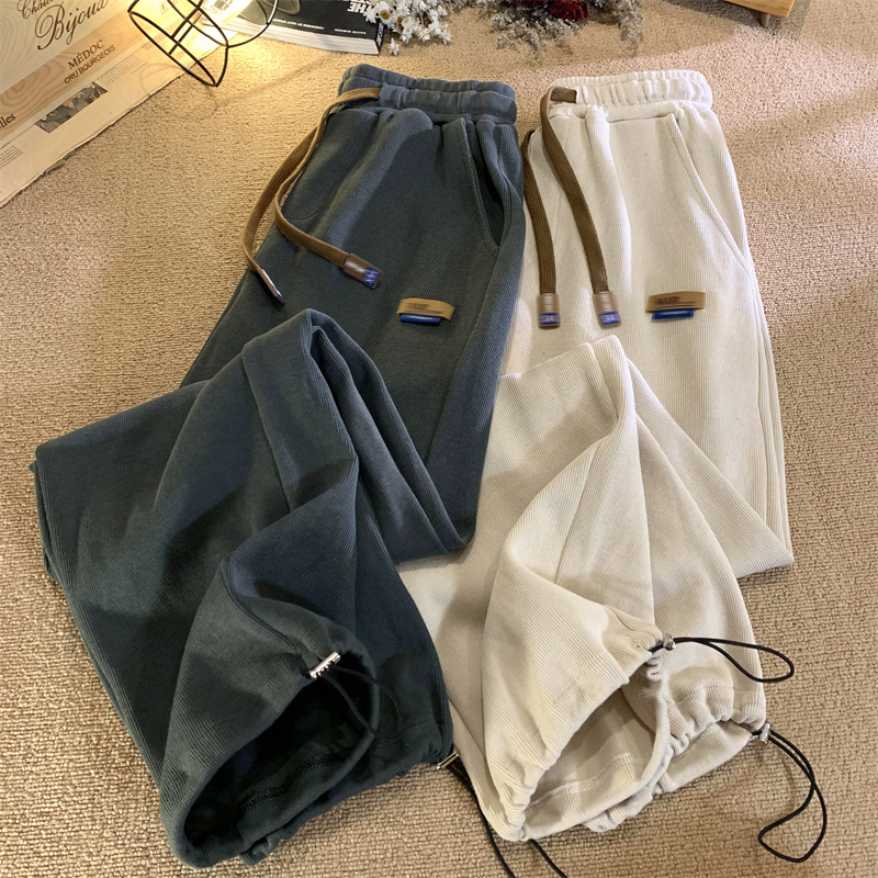 Осенние повседневные брюки, штаны, в американском стиле, на шнурках, свободный прямой крой