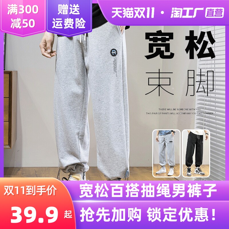 Tide, мужские осенние демисезонные брендовые универсальные штаны, свободный крой, на шнурках