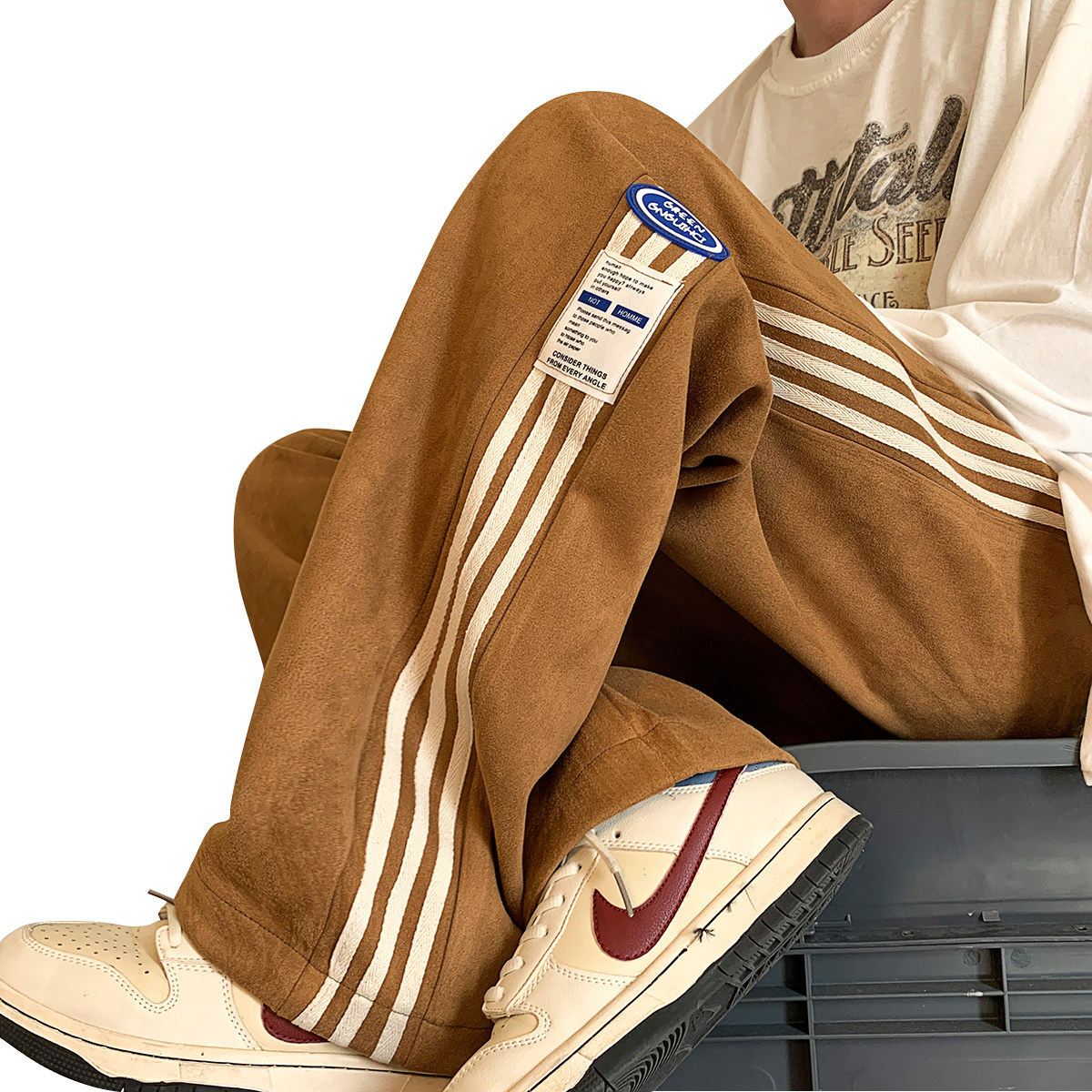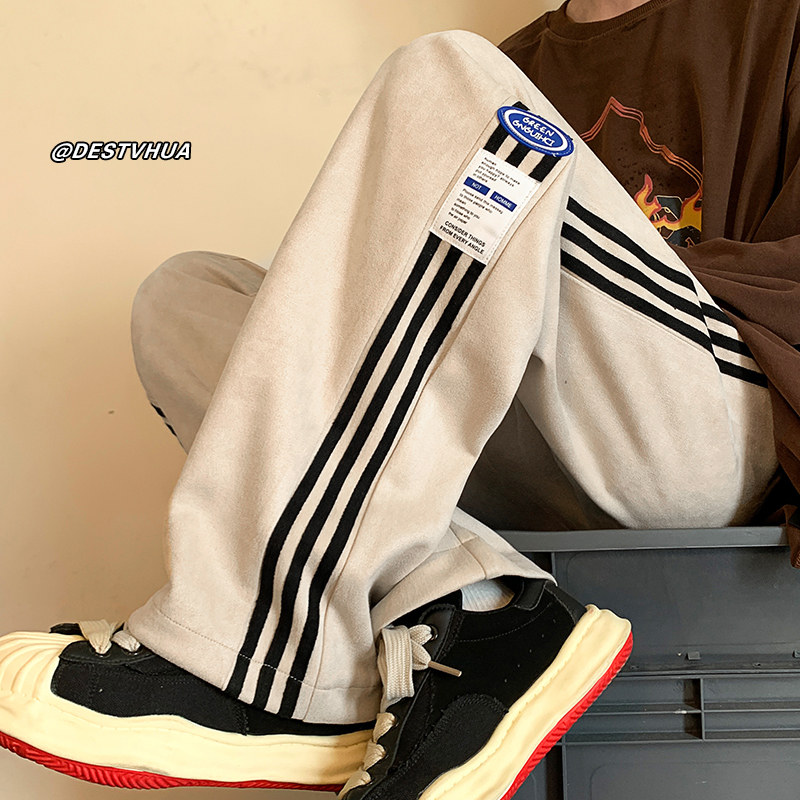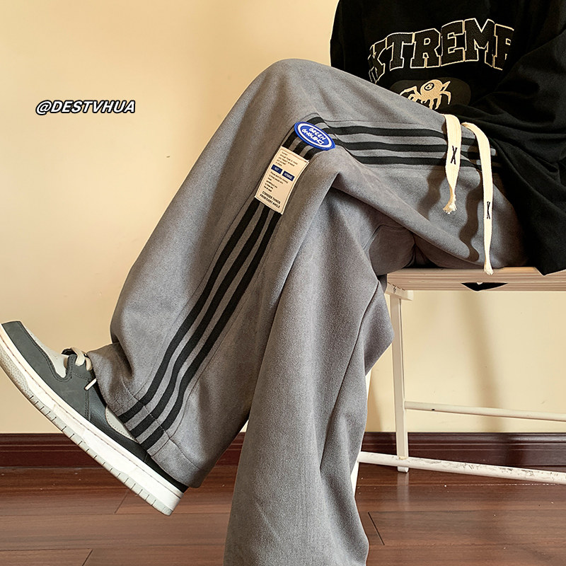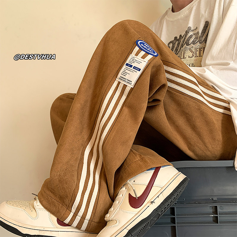 Коричневые бархатные дизайнерские штаны для отдыха, оверсайз, свободный прямой крой, большой размер