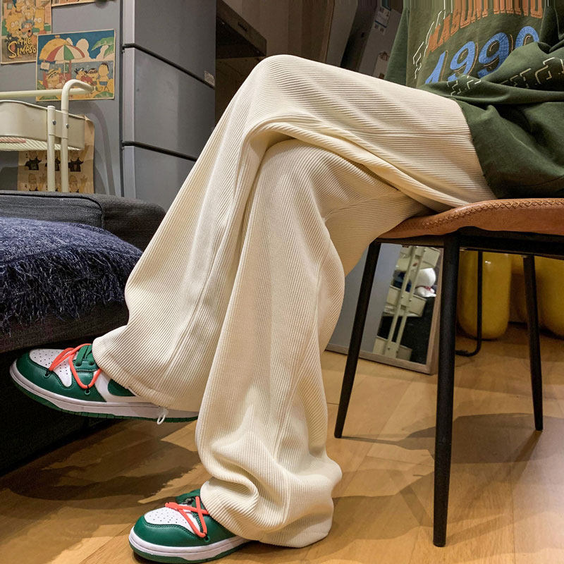Бежевые вельветовые японские штаны, свободный прямой крой