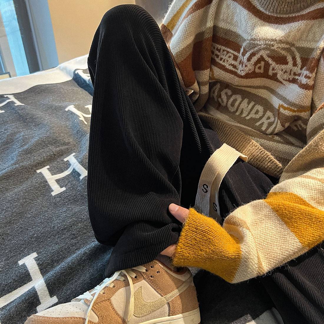 Вельветовые демисезонные универсальные утепленные повседневные брюки для отдыха, свободный прямой крой, коллекция 2022