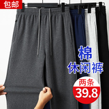 Хлопковые флисовые демисезонные тонкие штаны для отдыха, свободный прямой крой, большой размер