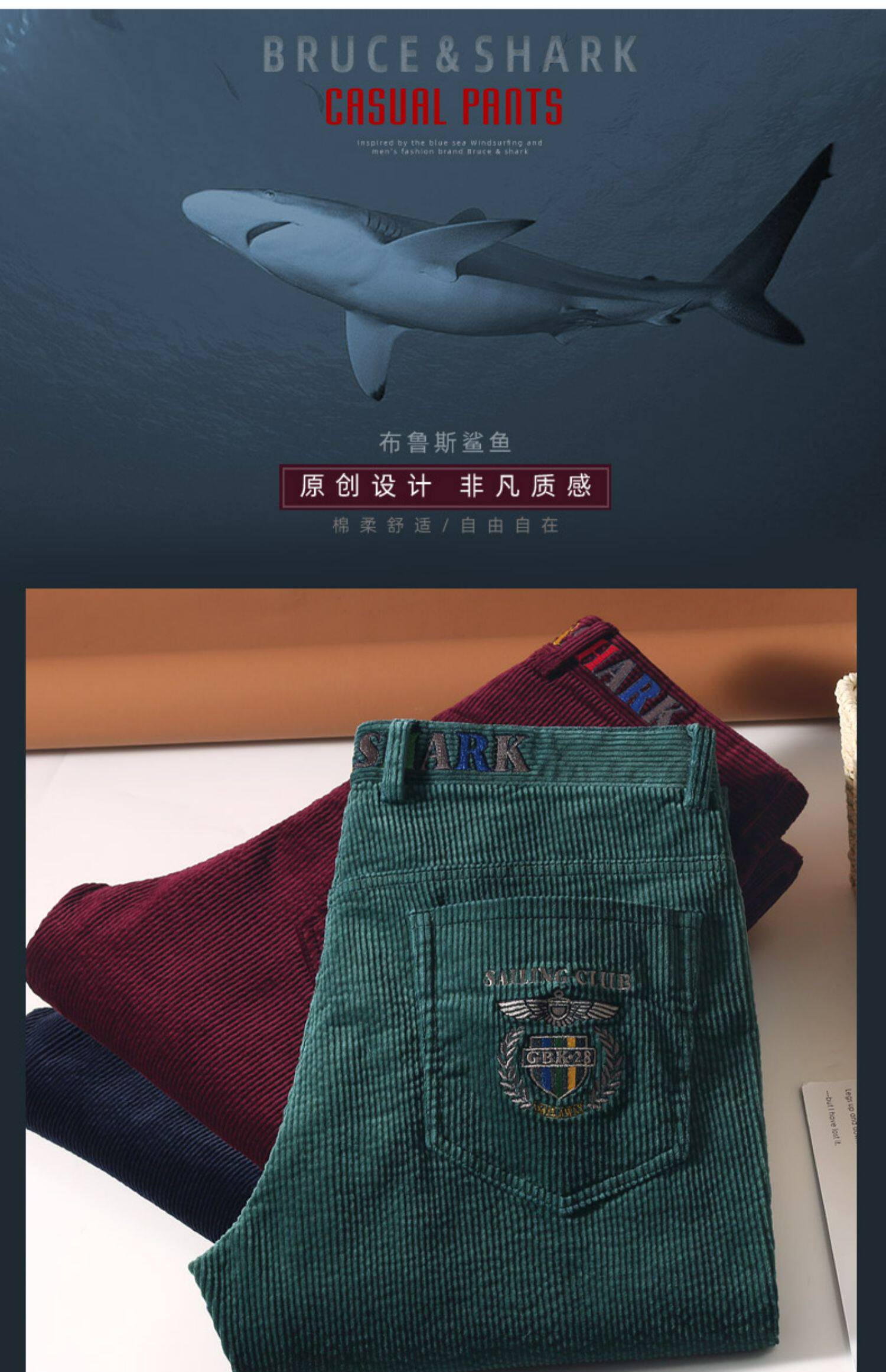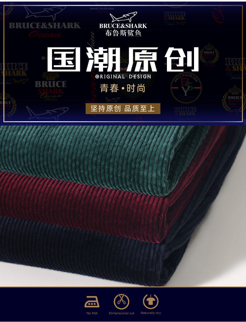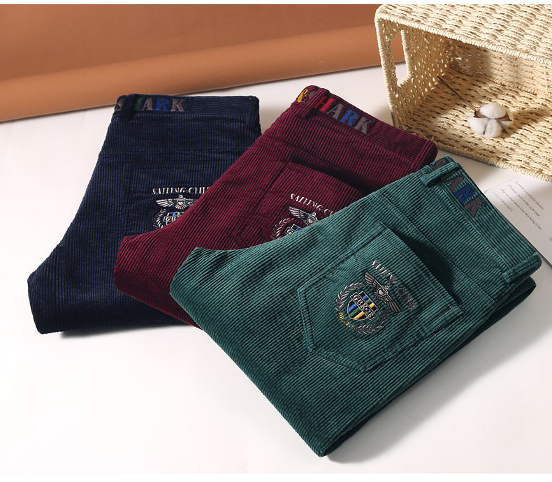 Демисезонные вельветовые штаны, акула, оверсайз, с вышивкой, свободный прямой крой