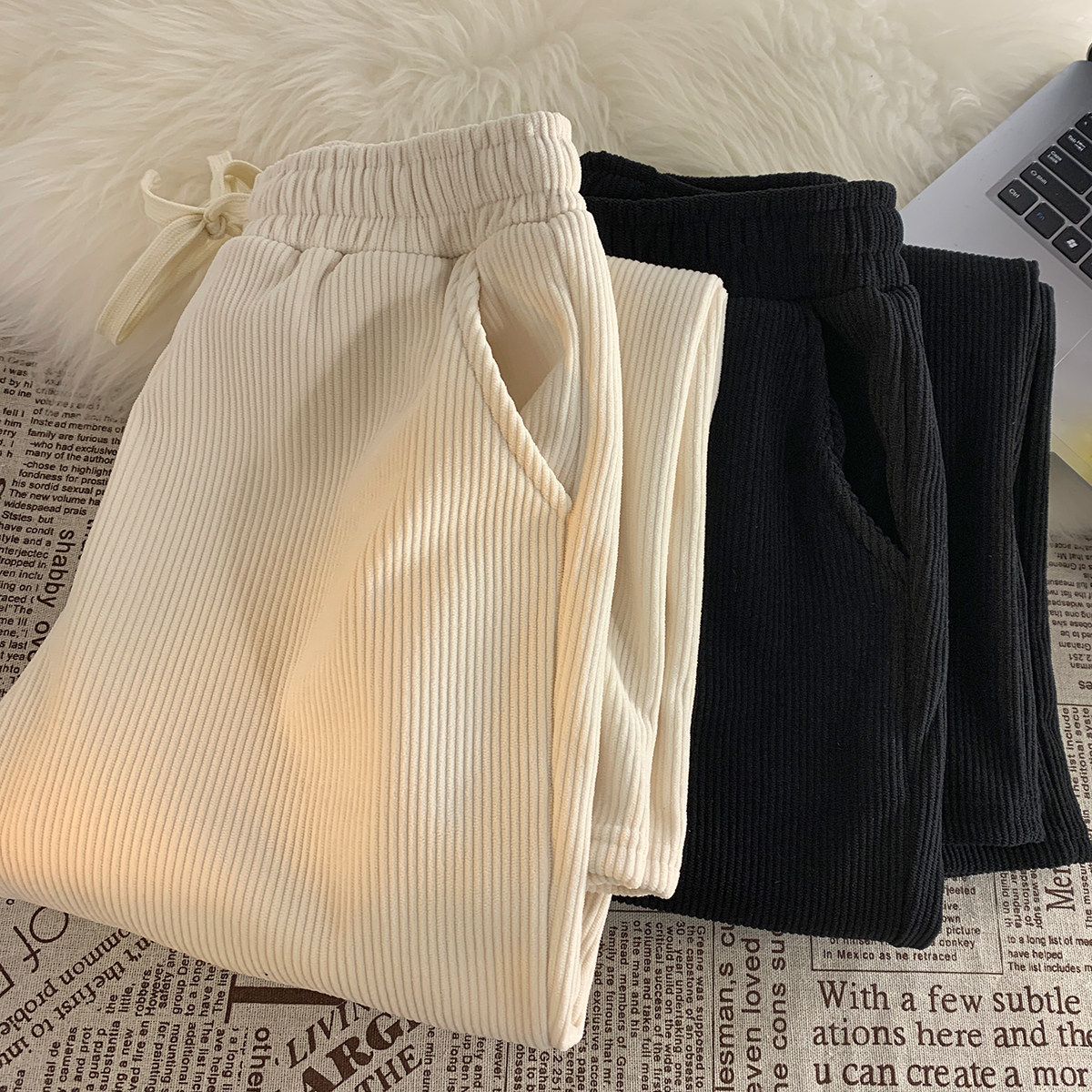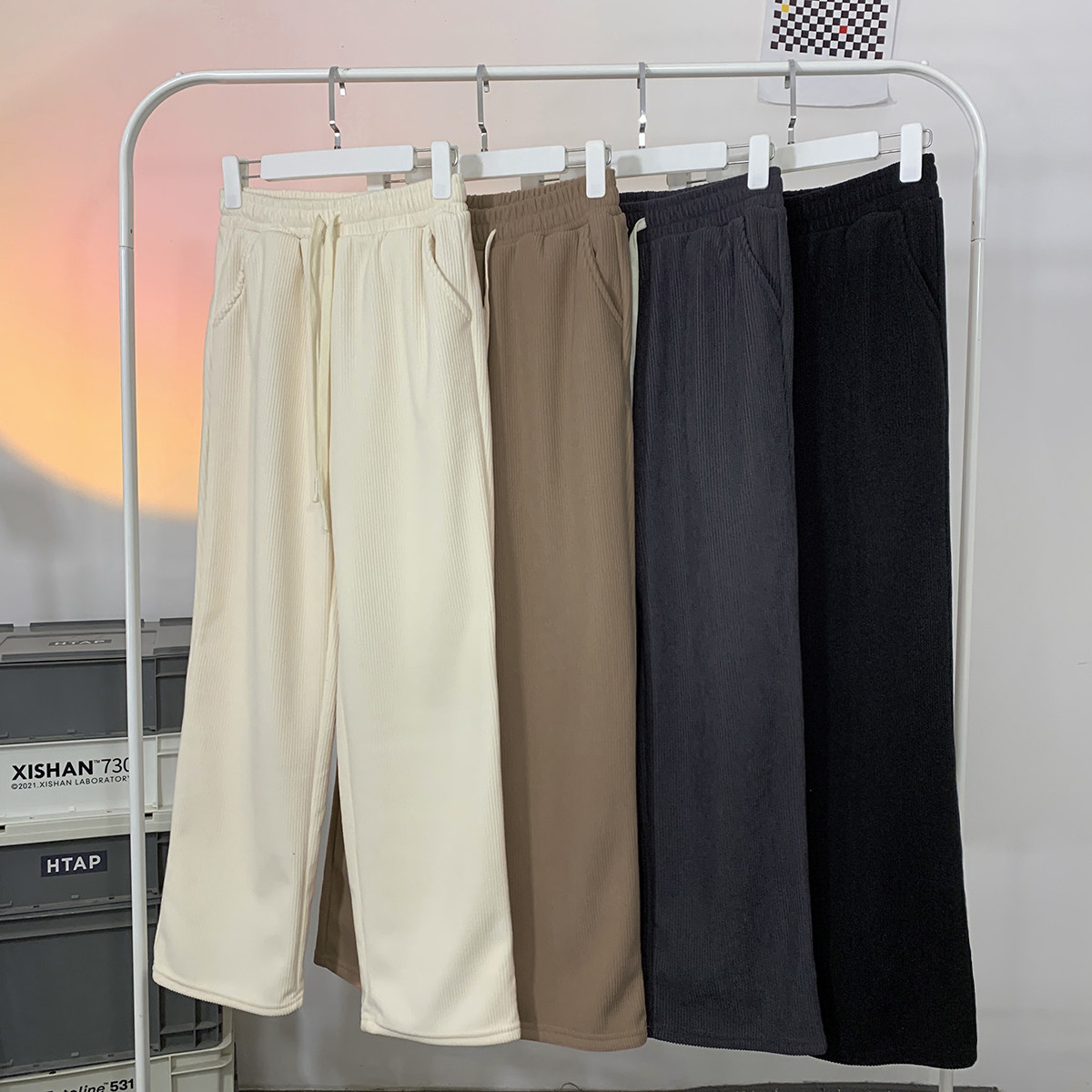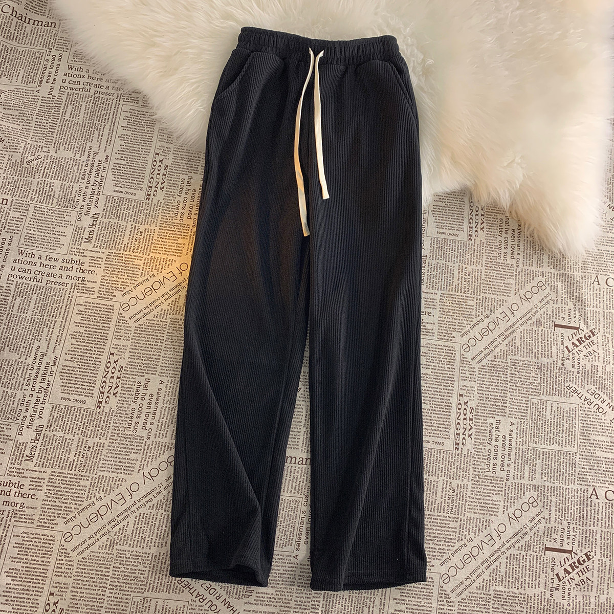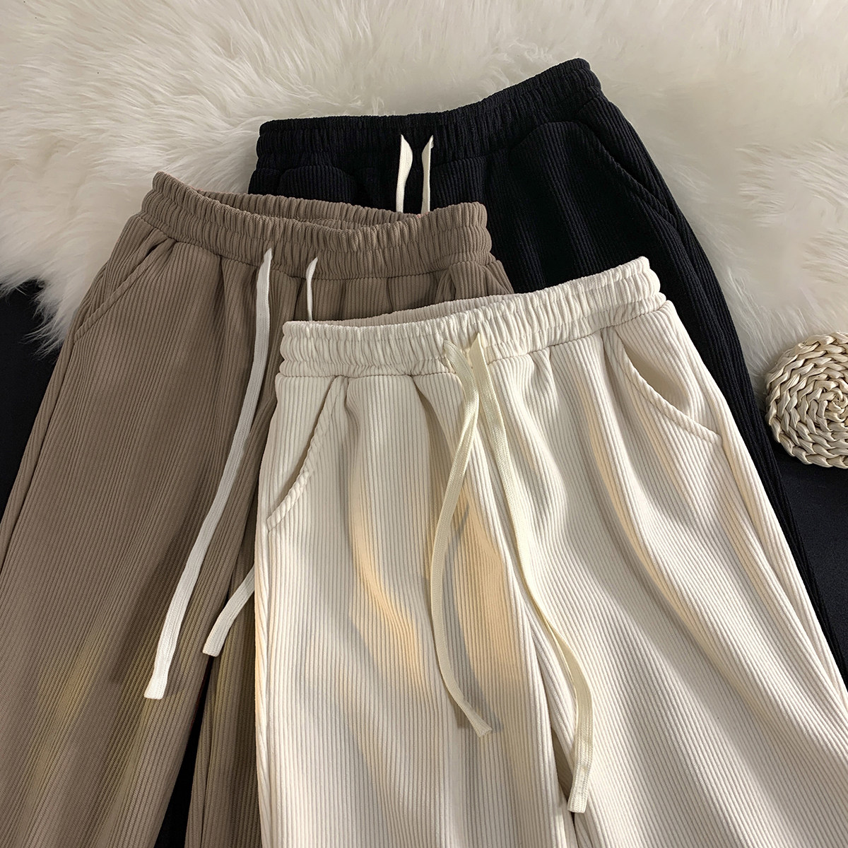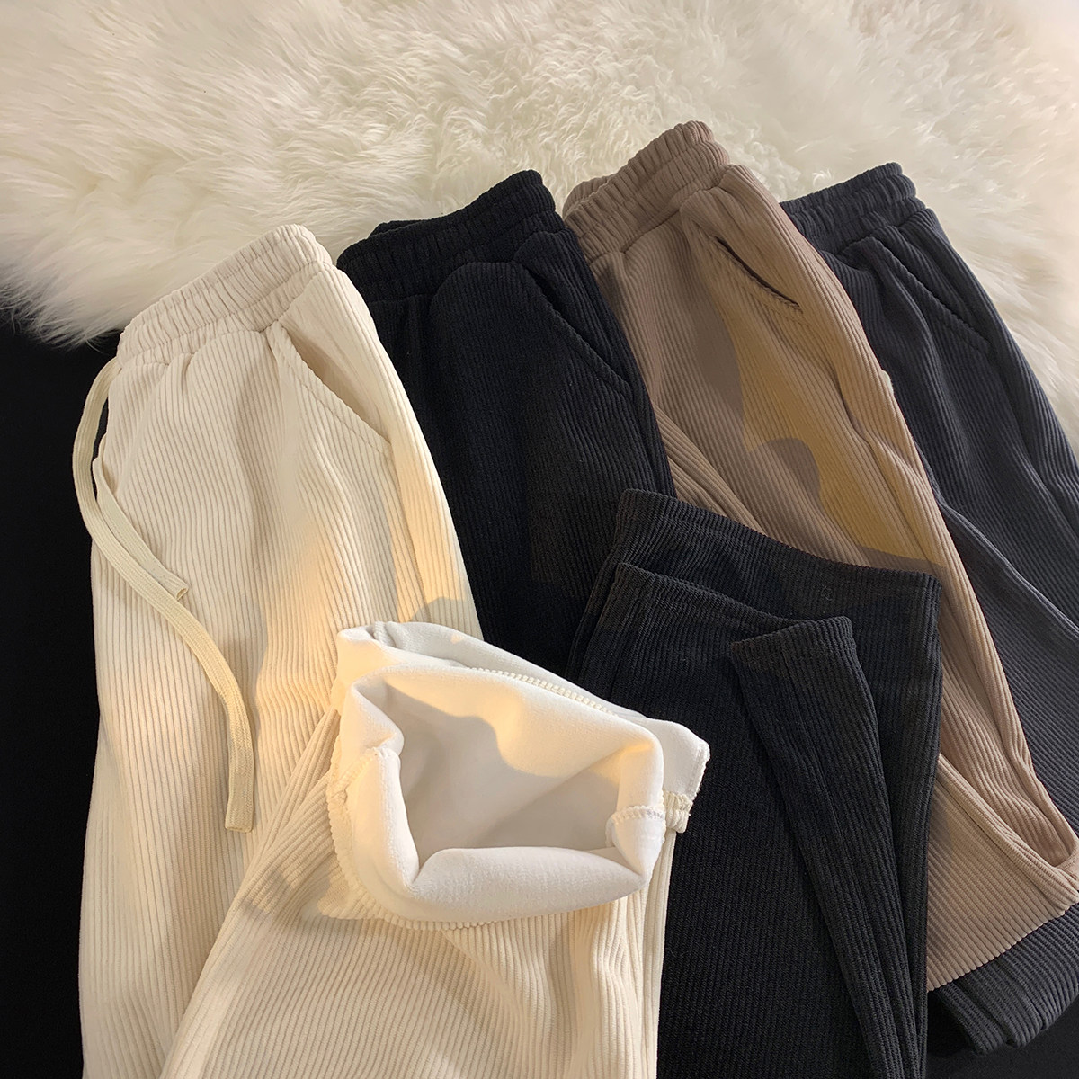 Tide, вельветовые демисезонные утепленные штаны, спортивные повседневные брюки для отдыха, свободный прямой крой