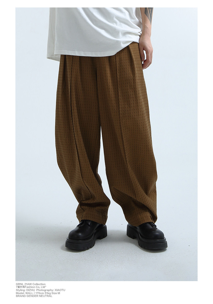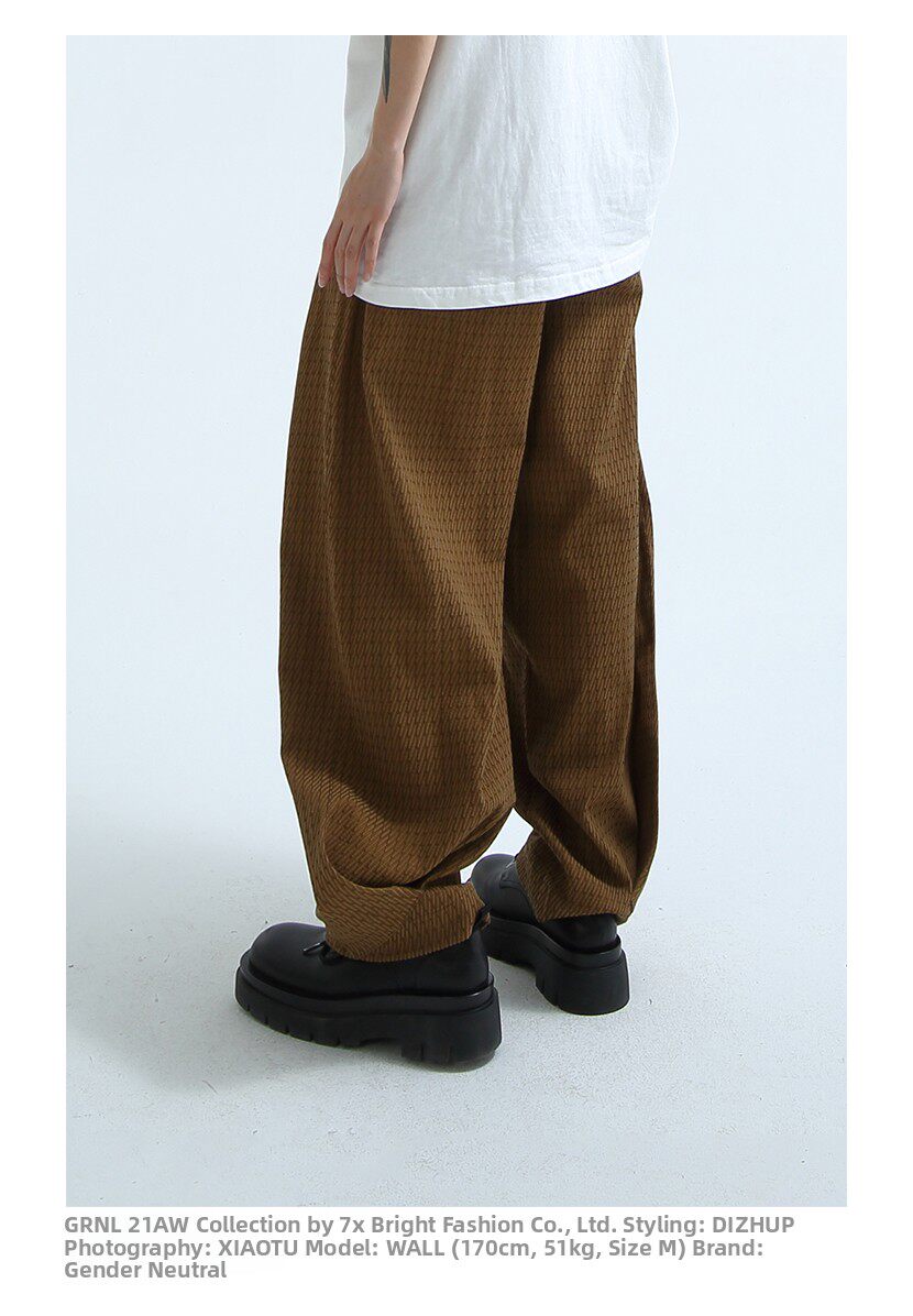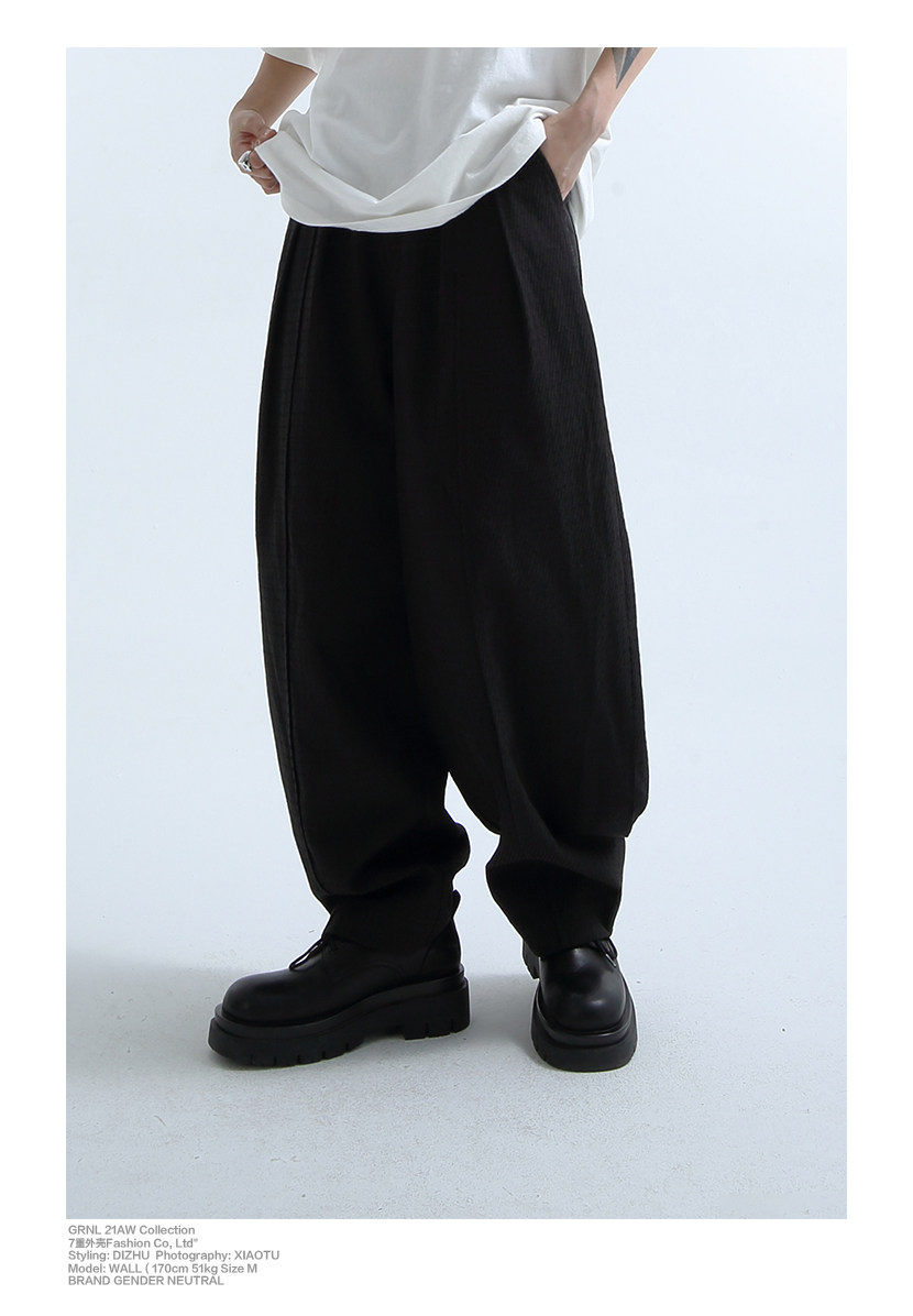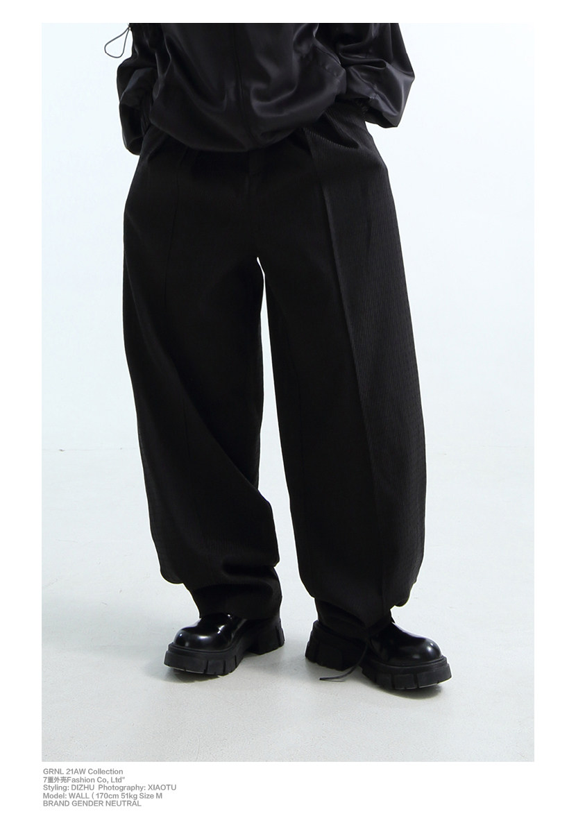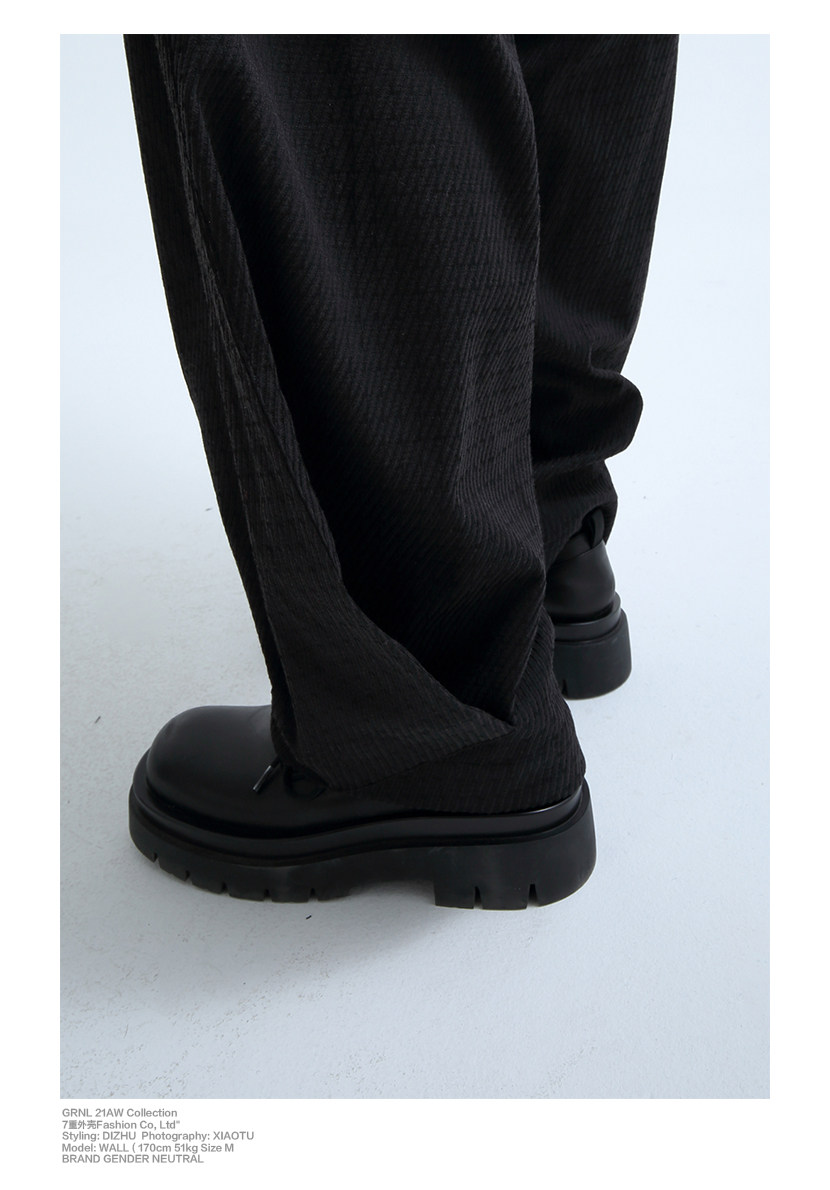«GRNL» очень легко сопоставить, с большими складками профиля, подушением и скрытой плотью ноги, не спланированными прямыми брюками без железа.