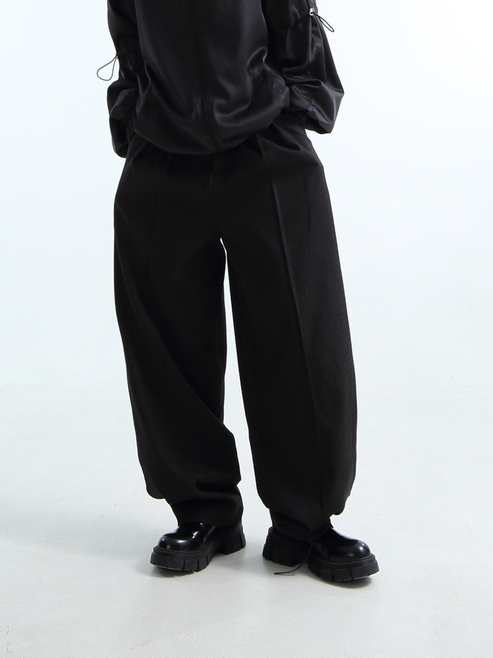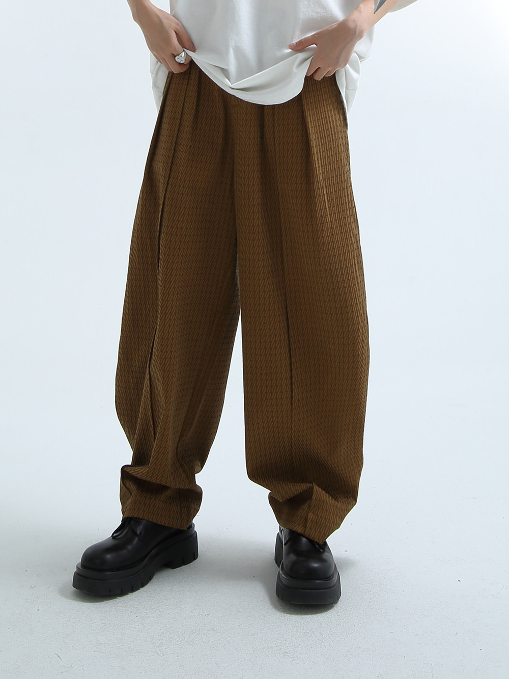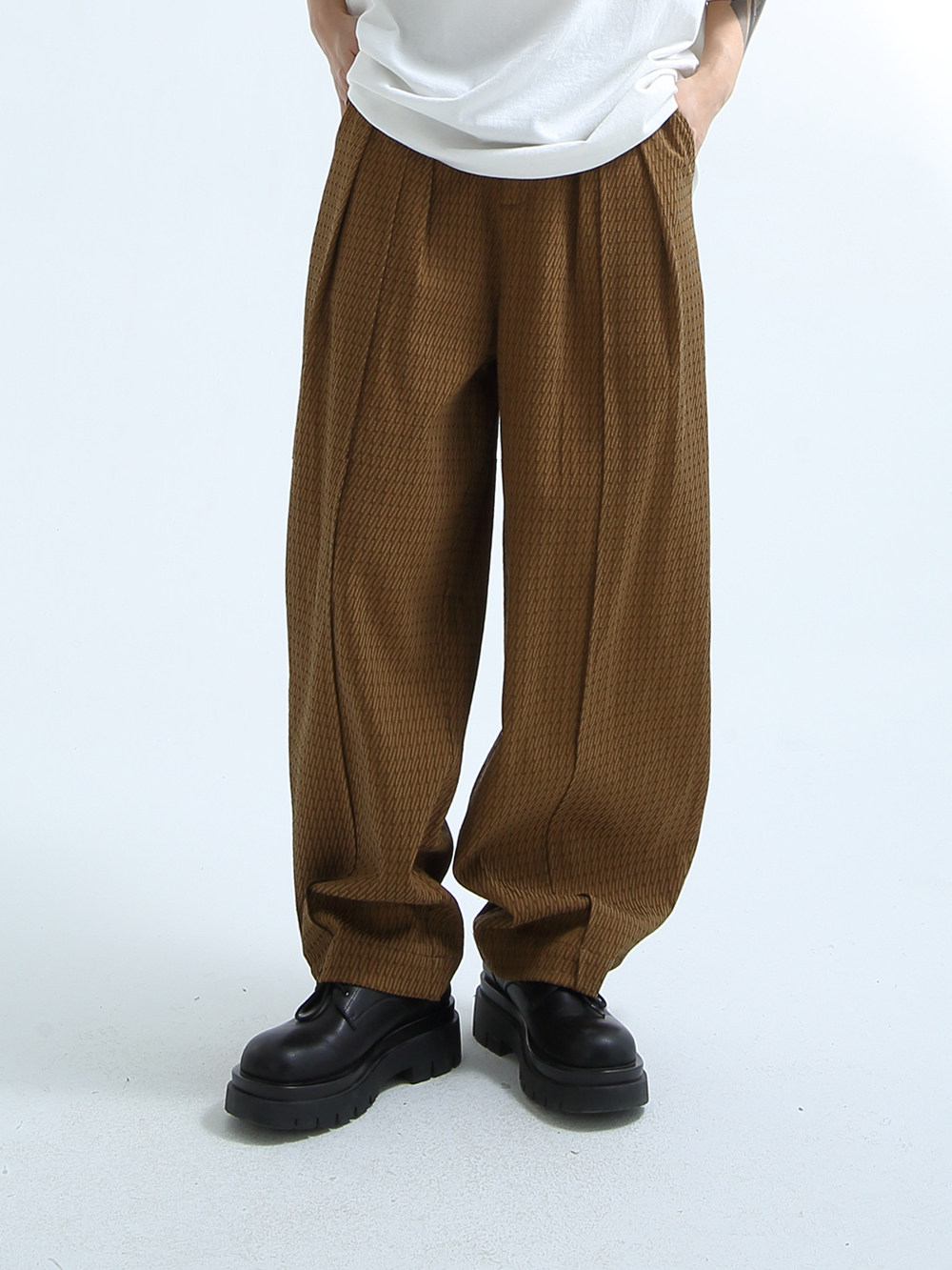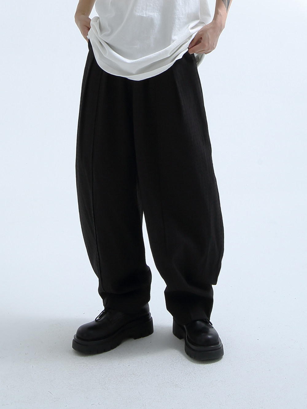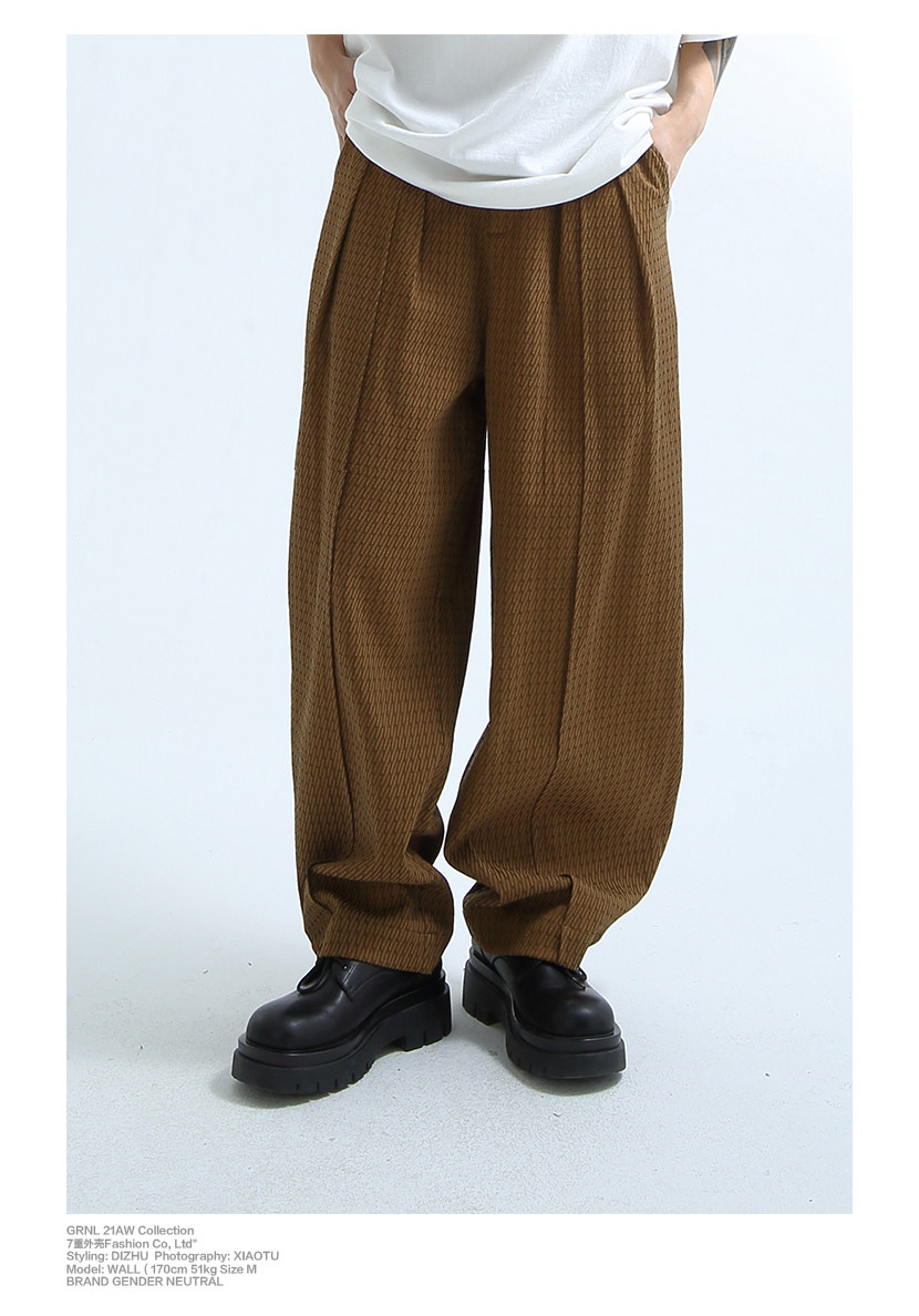 «GRNL» очень легко сопоставить, с большими складками профиля, подушением и скрытой плотью ноги, не спланированными прямыми брюками без железа.