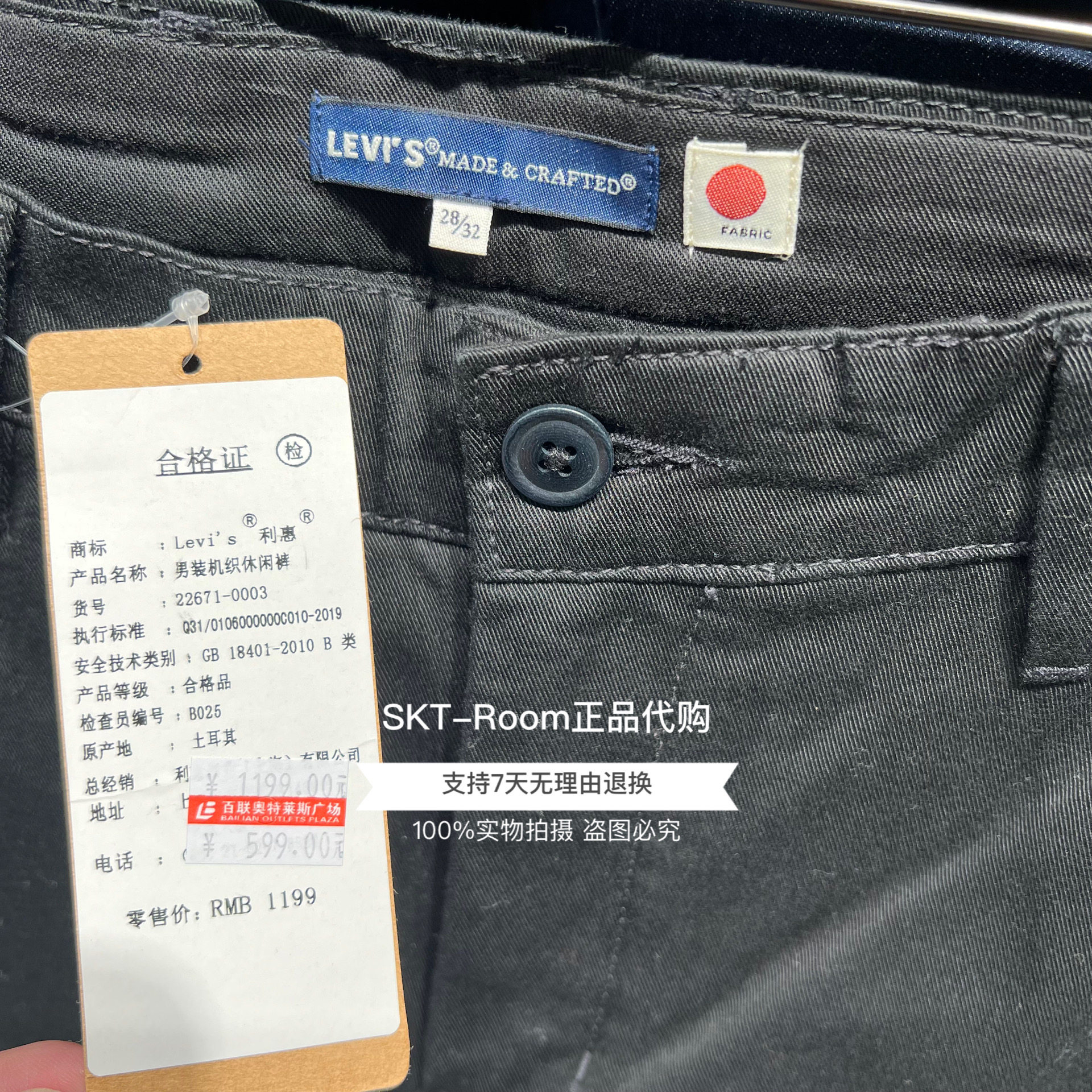 Levis Мужские свободные повседневные брюки чисто черного цвета высокого класса MOJ Levis Counter Authentic японского производства 22671-0003