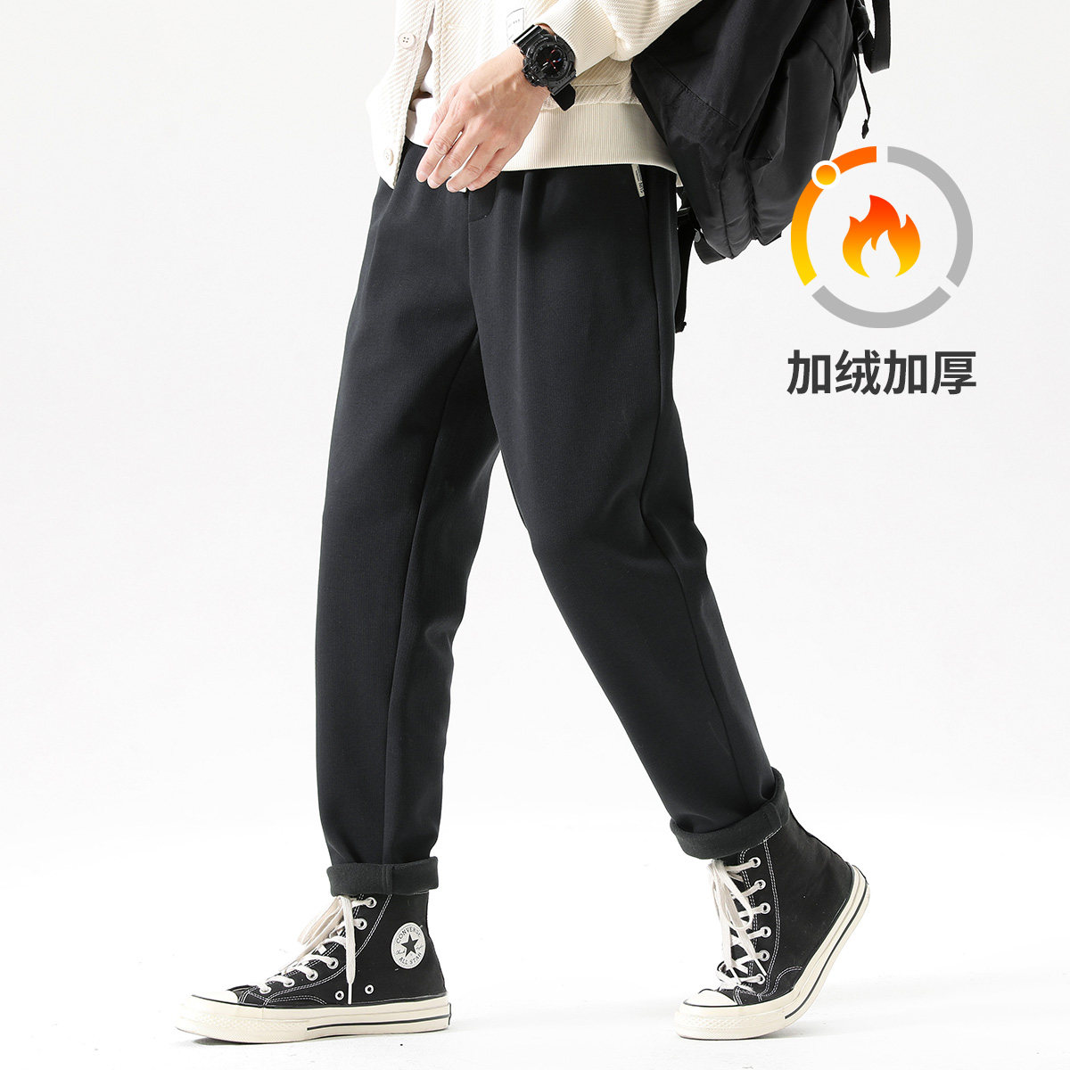 Мужские утепленные штаны, джинсы с начесом, повседневные брюки, оверсайз