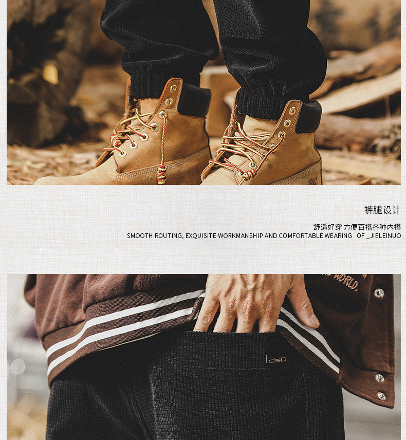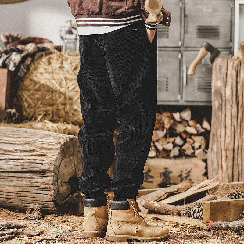 Ретро вельветовые демисезонные штаны, в американском стиле, свободный прямой крой