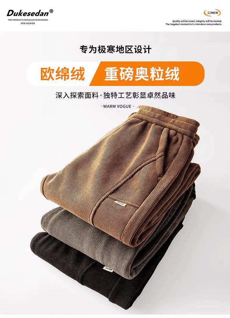 公爵车 Утепленные демисезонные штаны, мужские бархатные повседневные брюки для отдыха, свободный крой