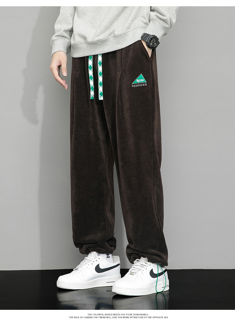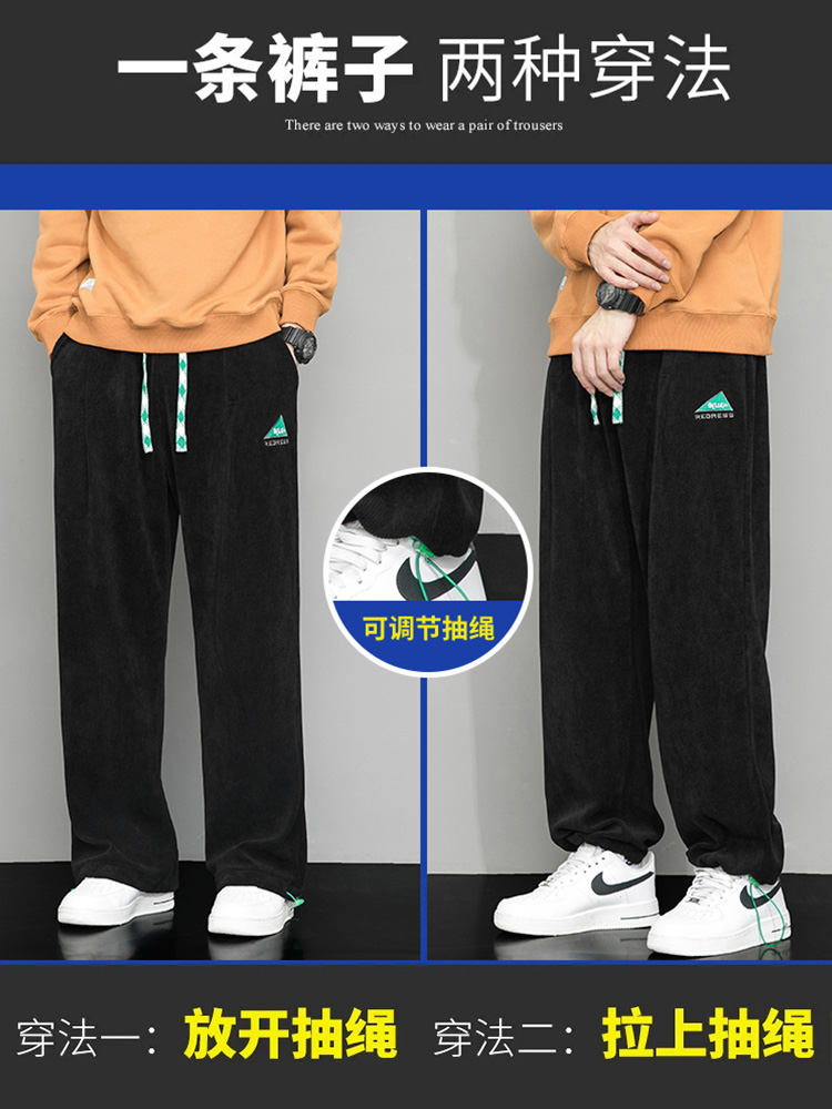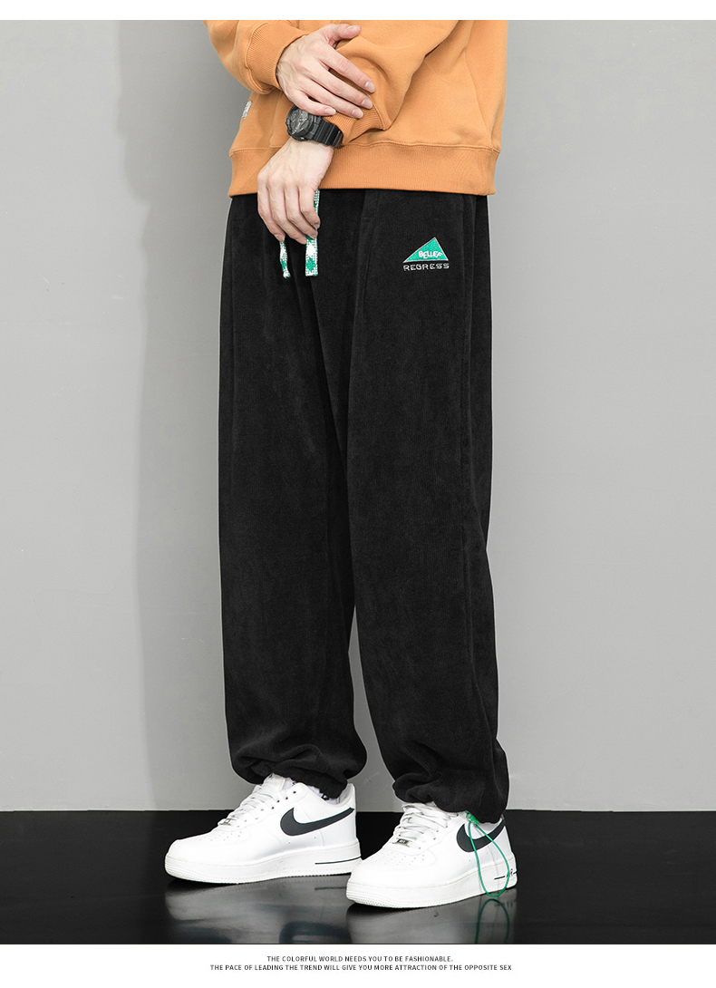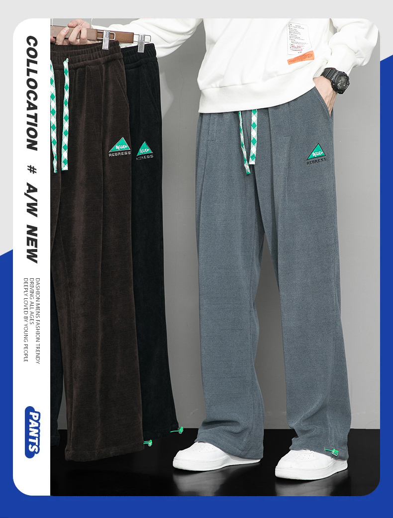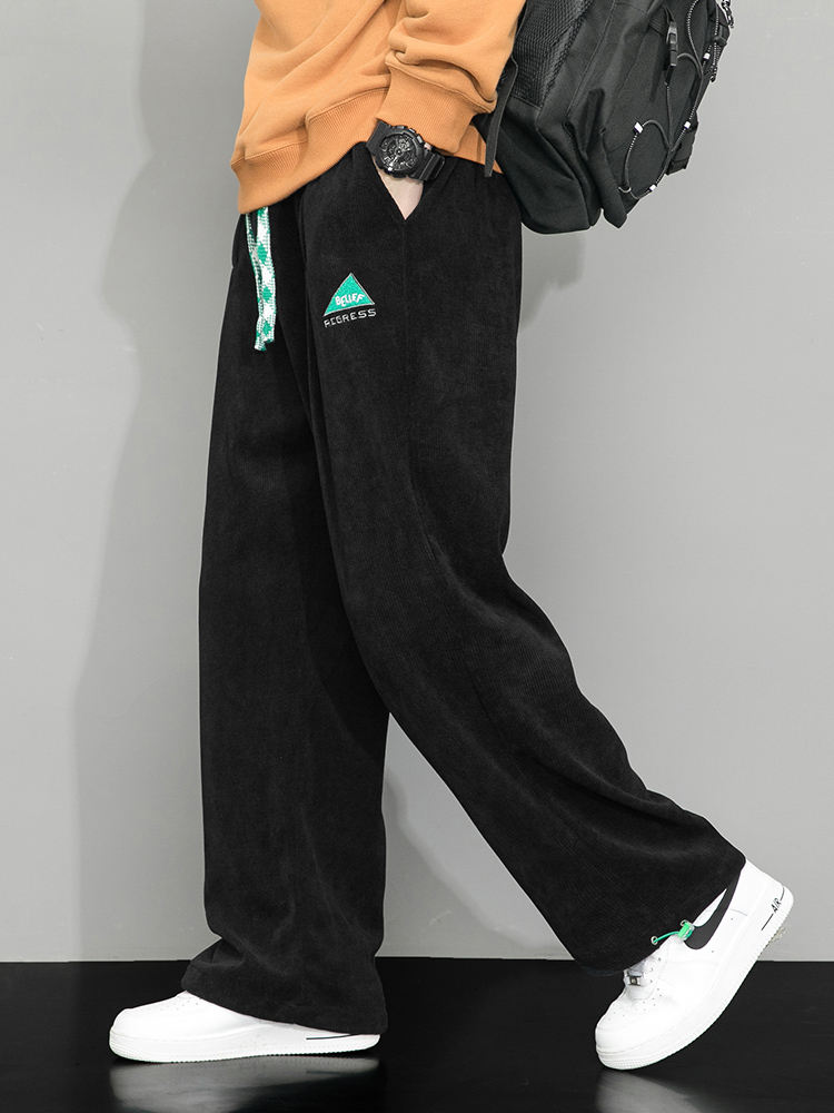 Летние вельветовые спортивные осенние штаны, свободный прямой крой, большой размер