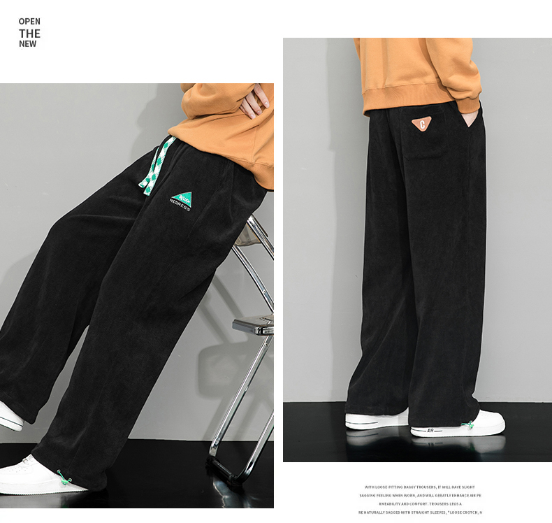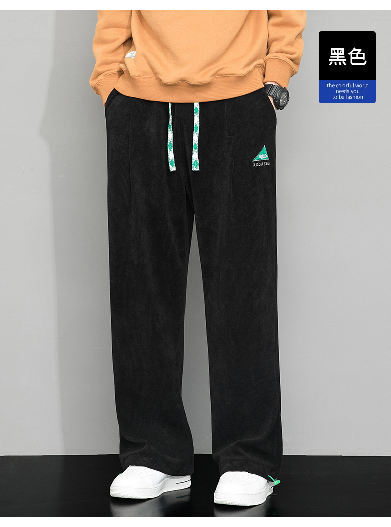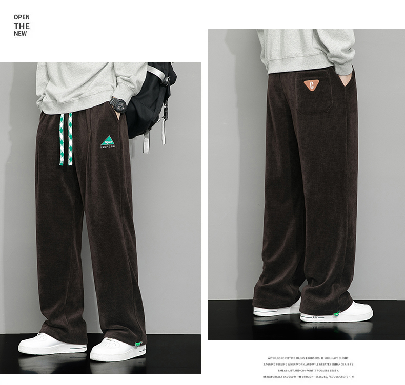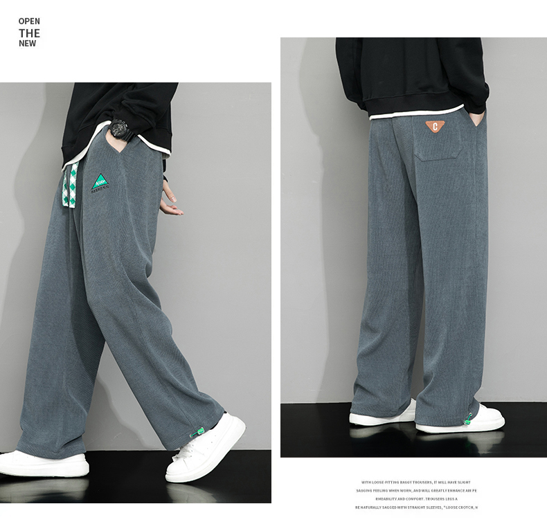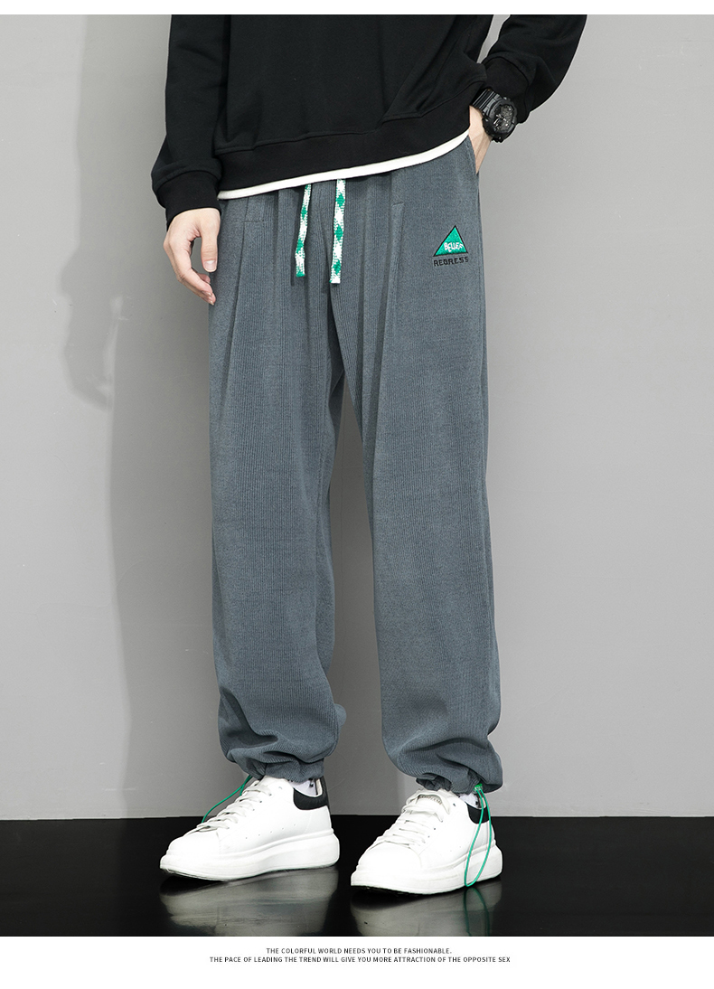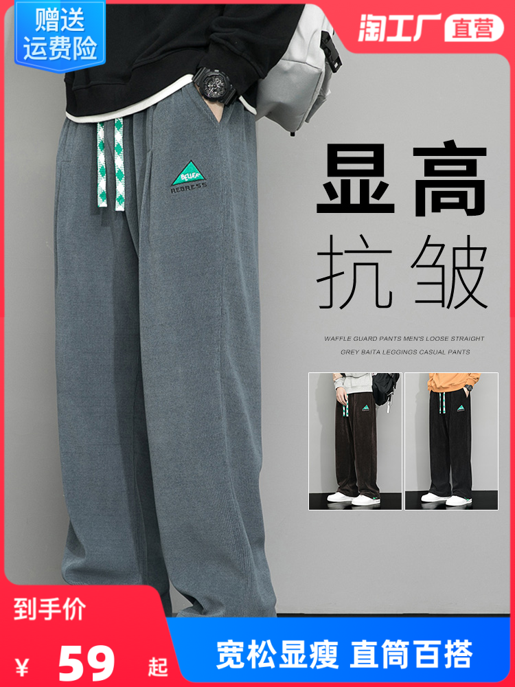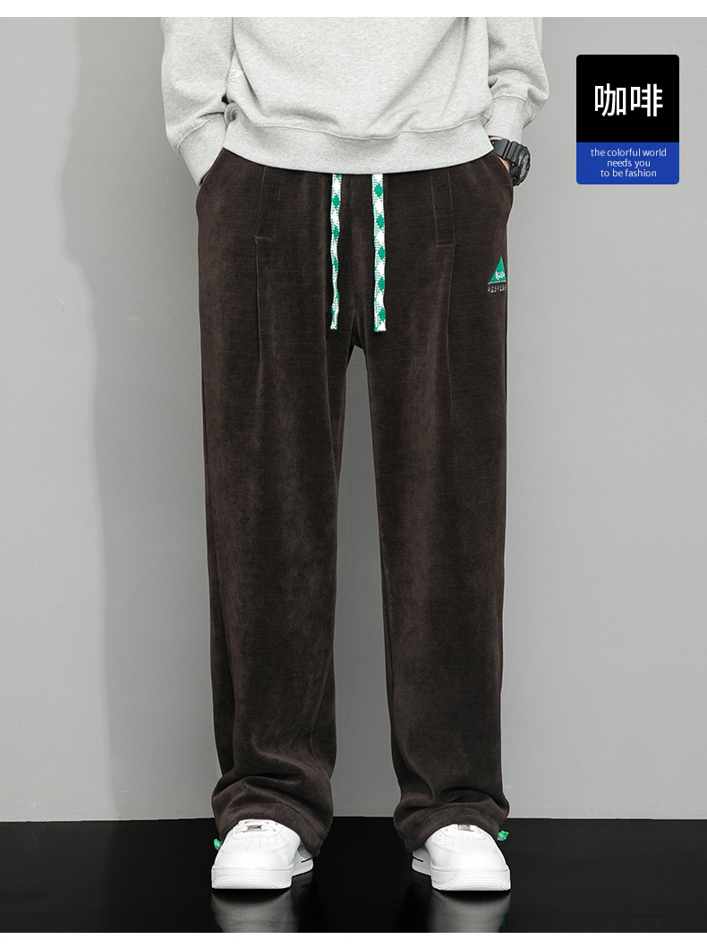 Летние вельветовые спортивные осенние штаны, свободный прямой крой, большой размер