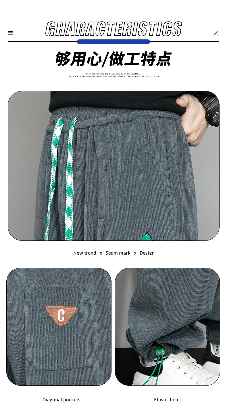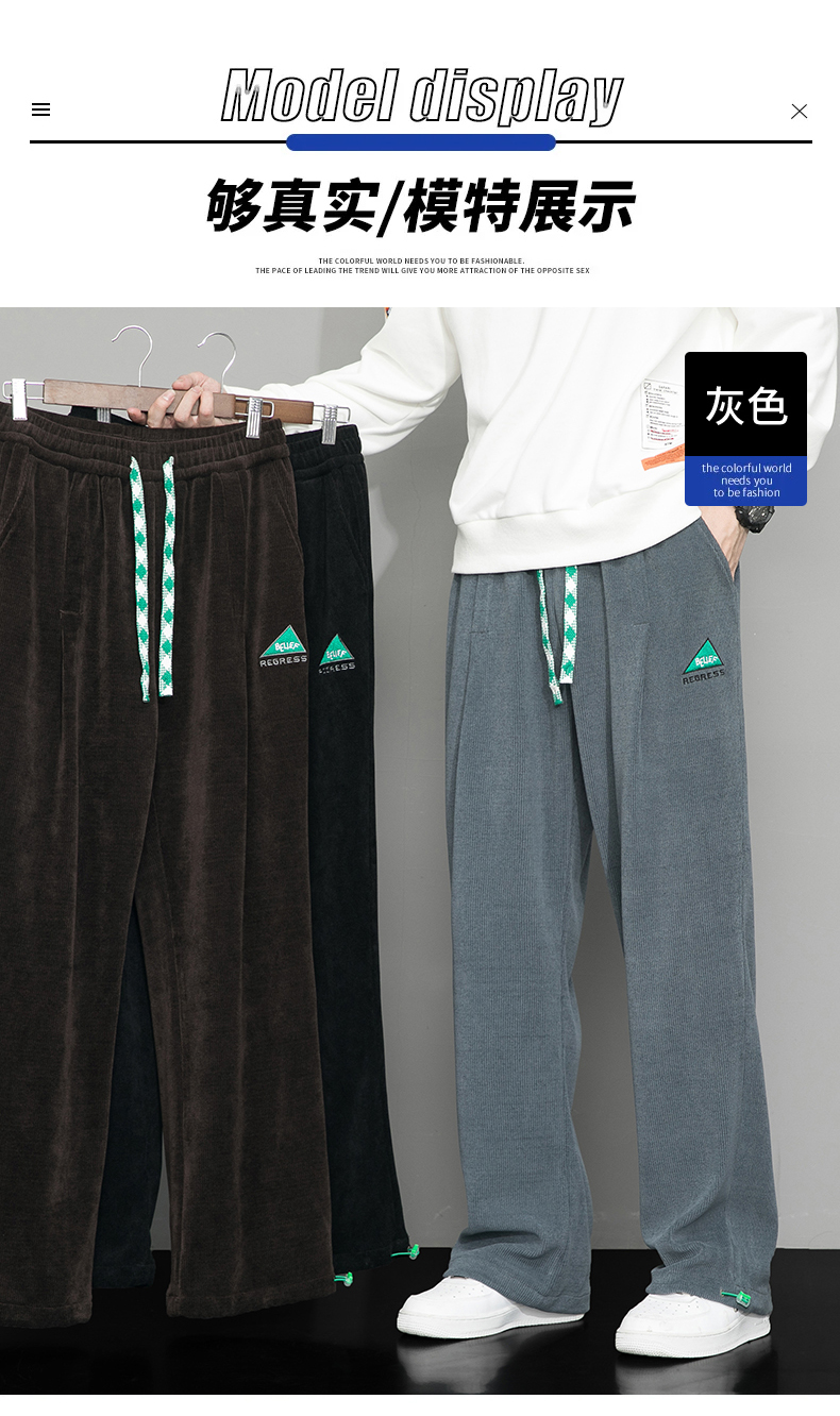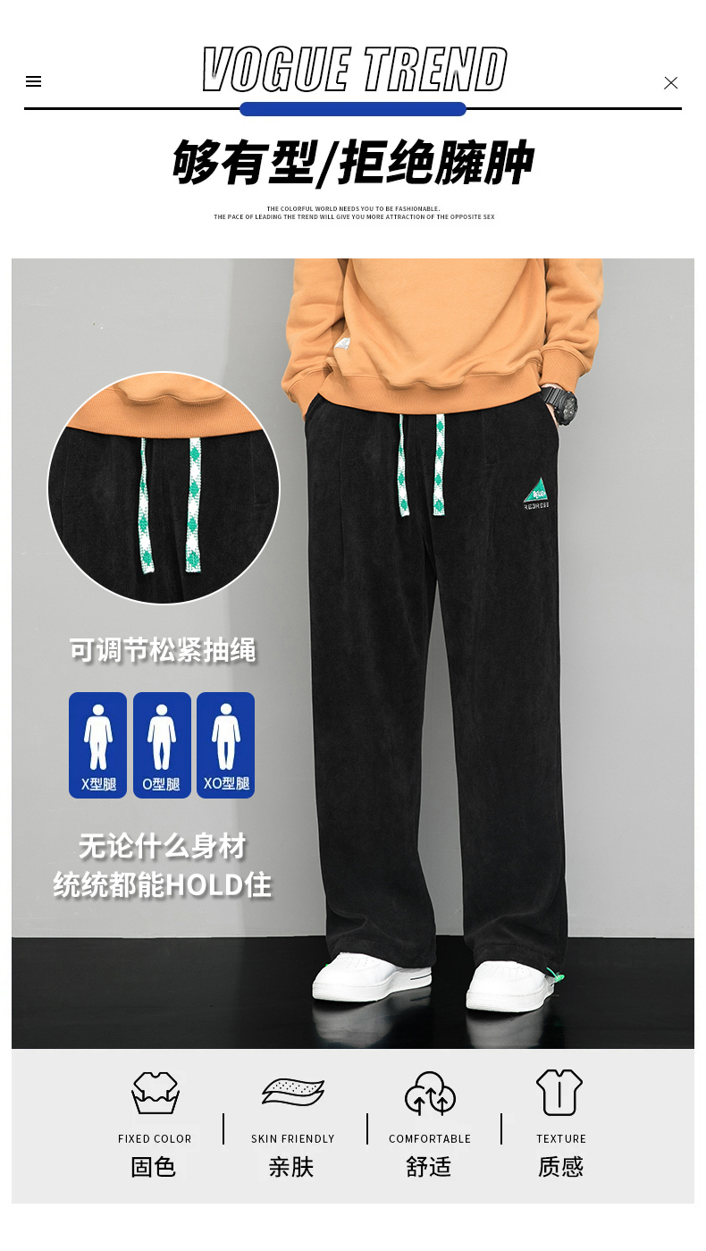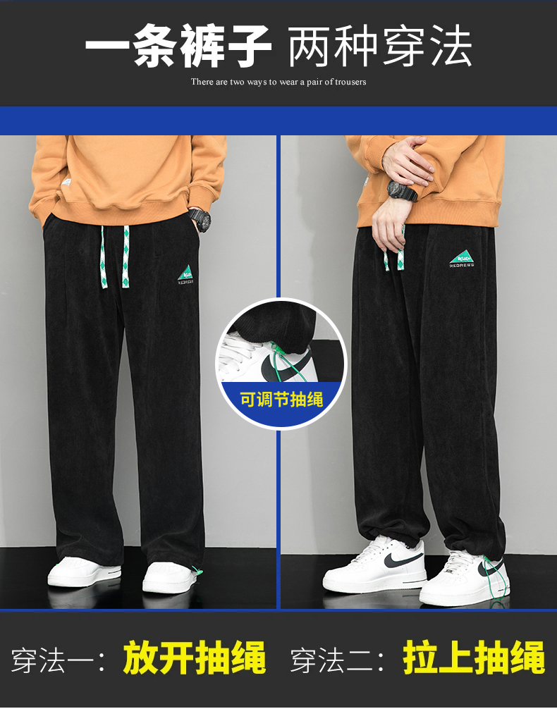 Летние вельветовые спортивные осенние штаны, свободный прямой крой, большой размер