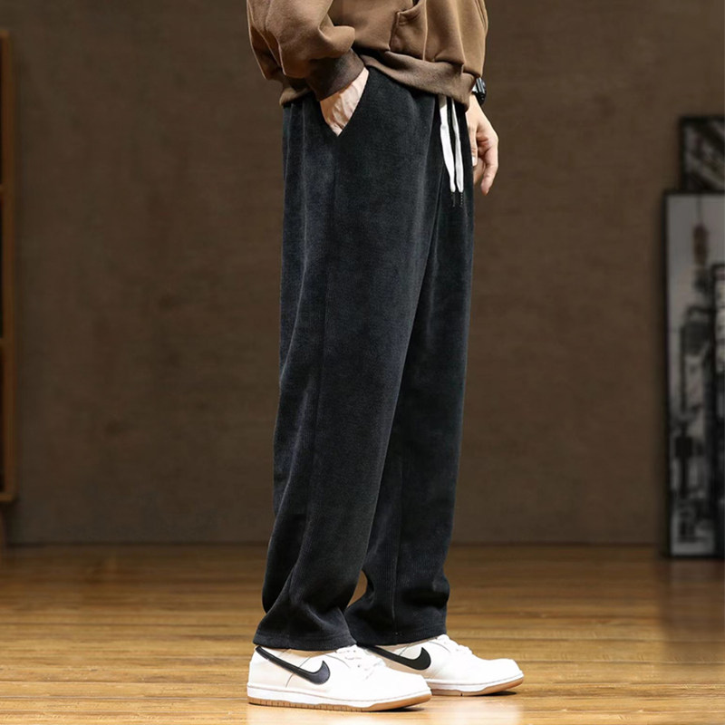 Мужские вельветовые утепленные демисезонные зимние штаны для отдыха, свободный прямой крой, оверсайз