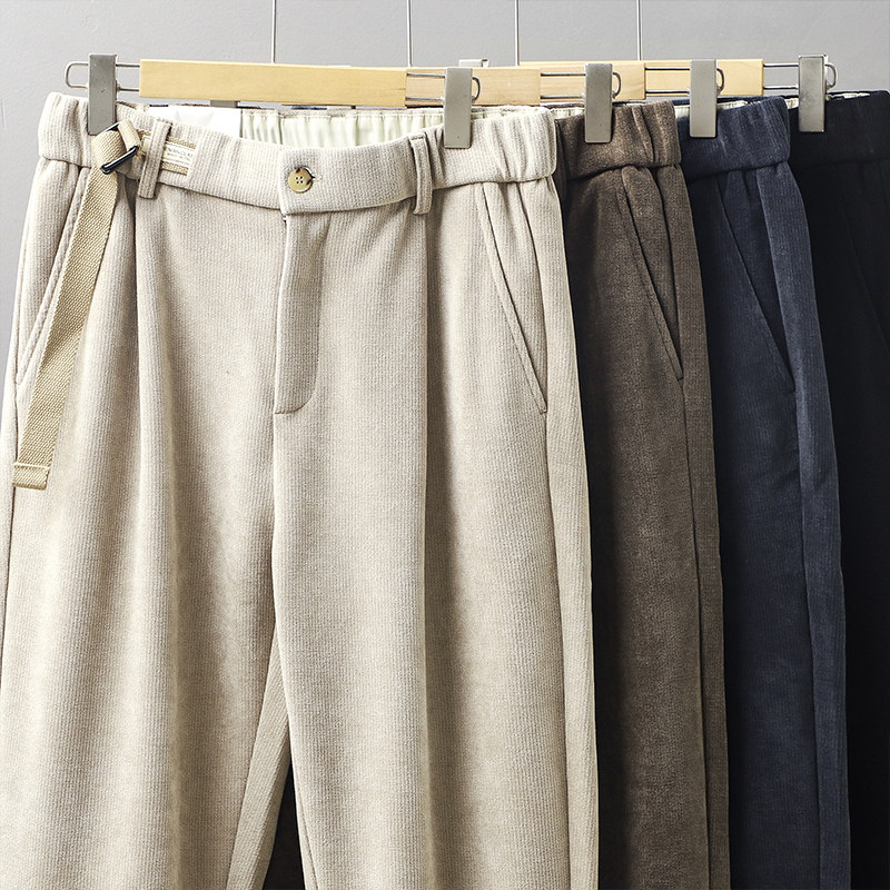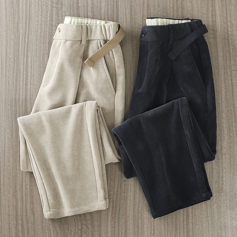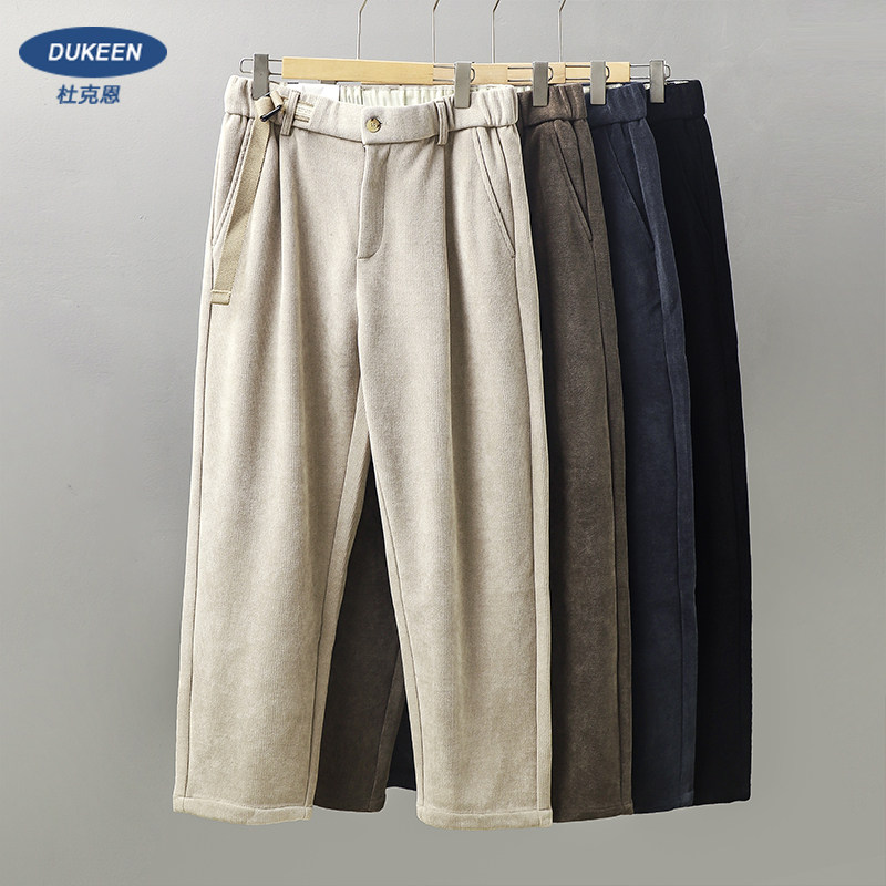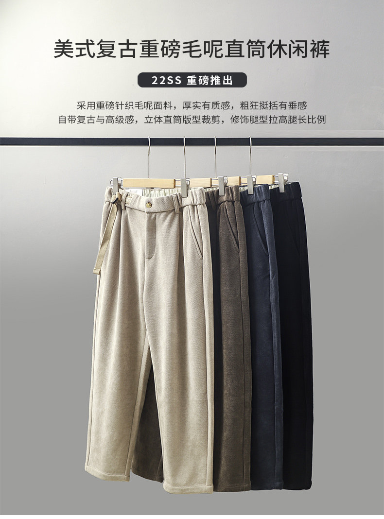 Ретро трикотажные шерстяные демисезонные штаны, в американском стиле, свободный прямой крой