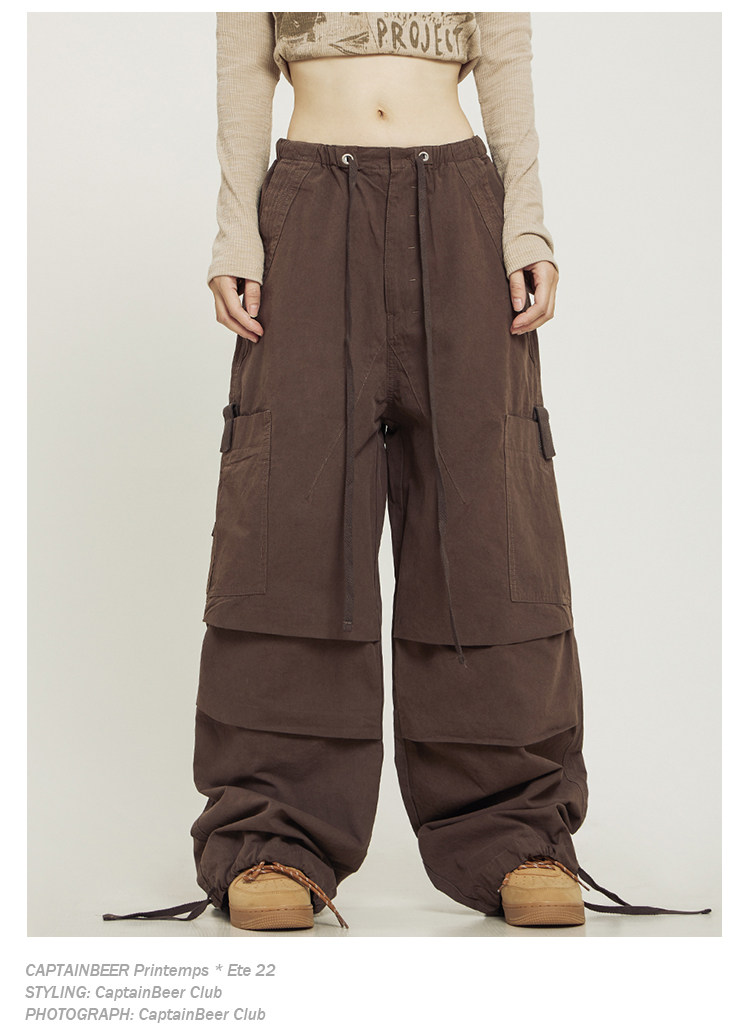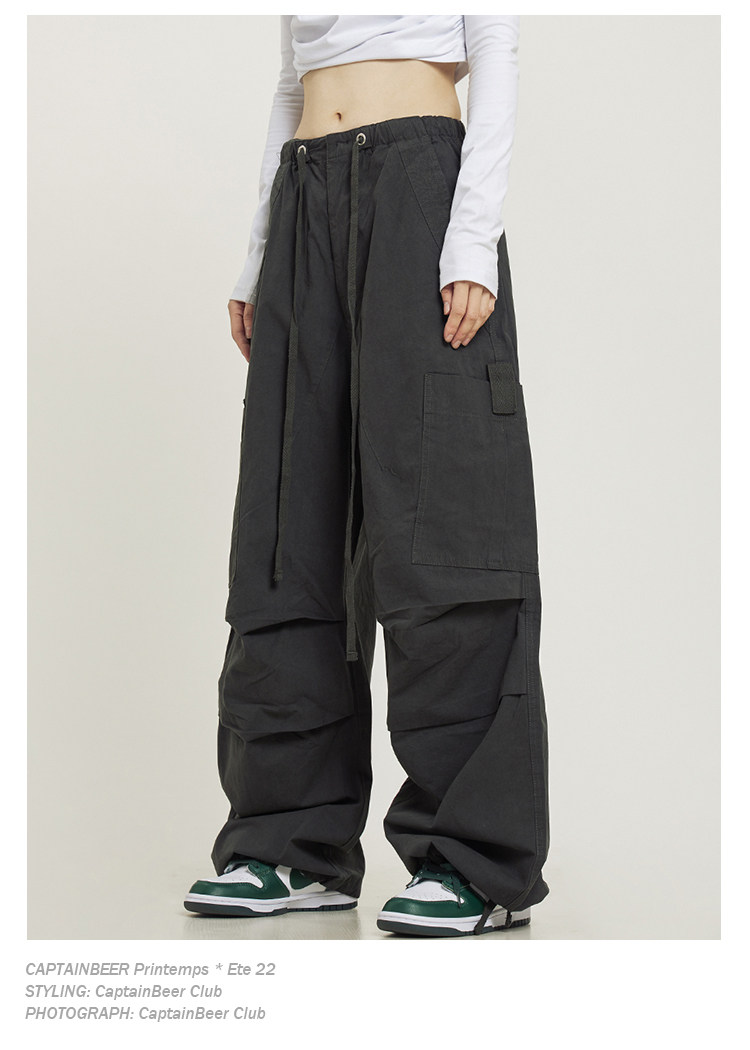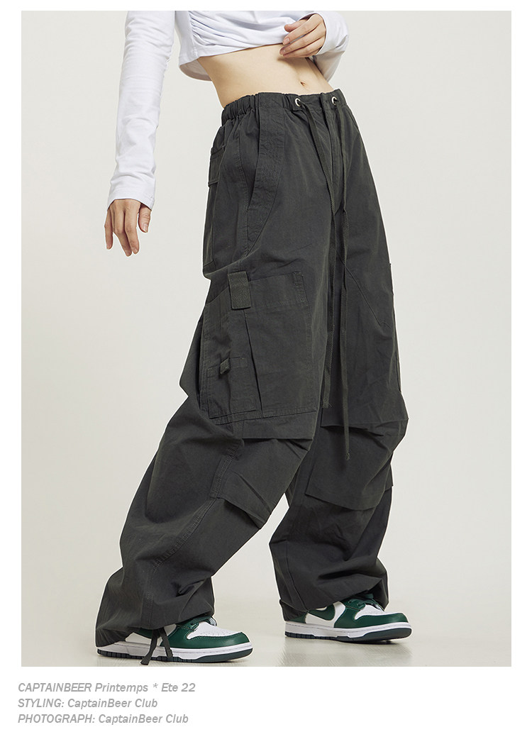 Тонкие штаны подходит для мужчин и женщин для отдыха, альпинистский парашютист, в американском стиле, оверсайз, свободный прямой крой
