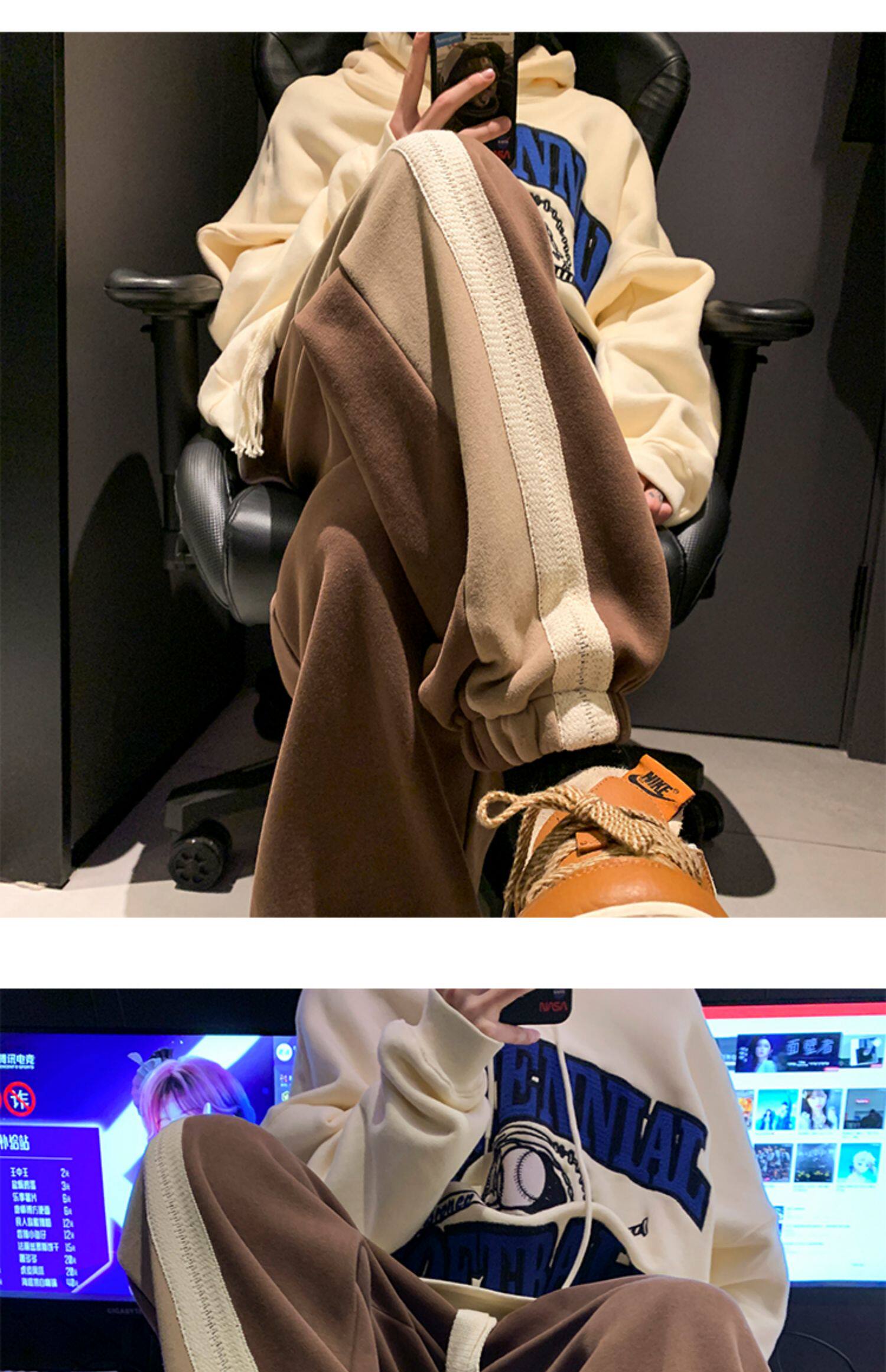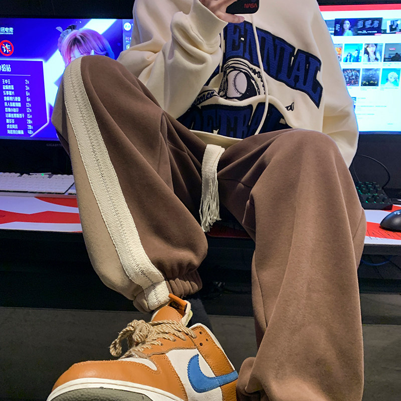 Утепленные штаны, ретро трендовые удерживающие тепло повседневные брюки, оверсайз