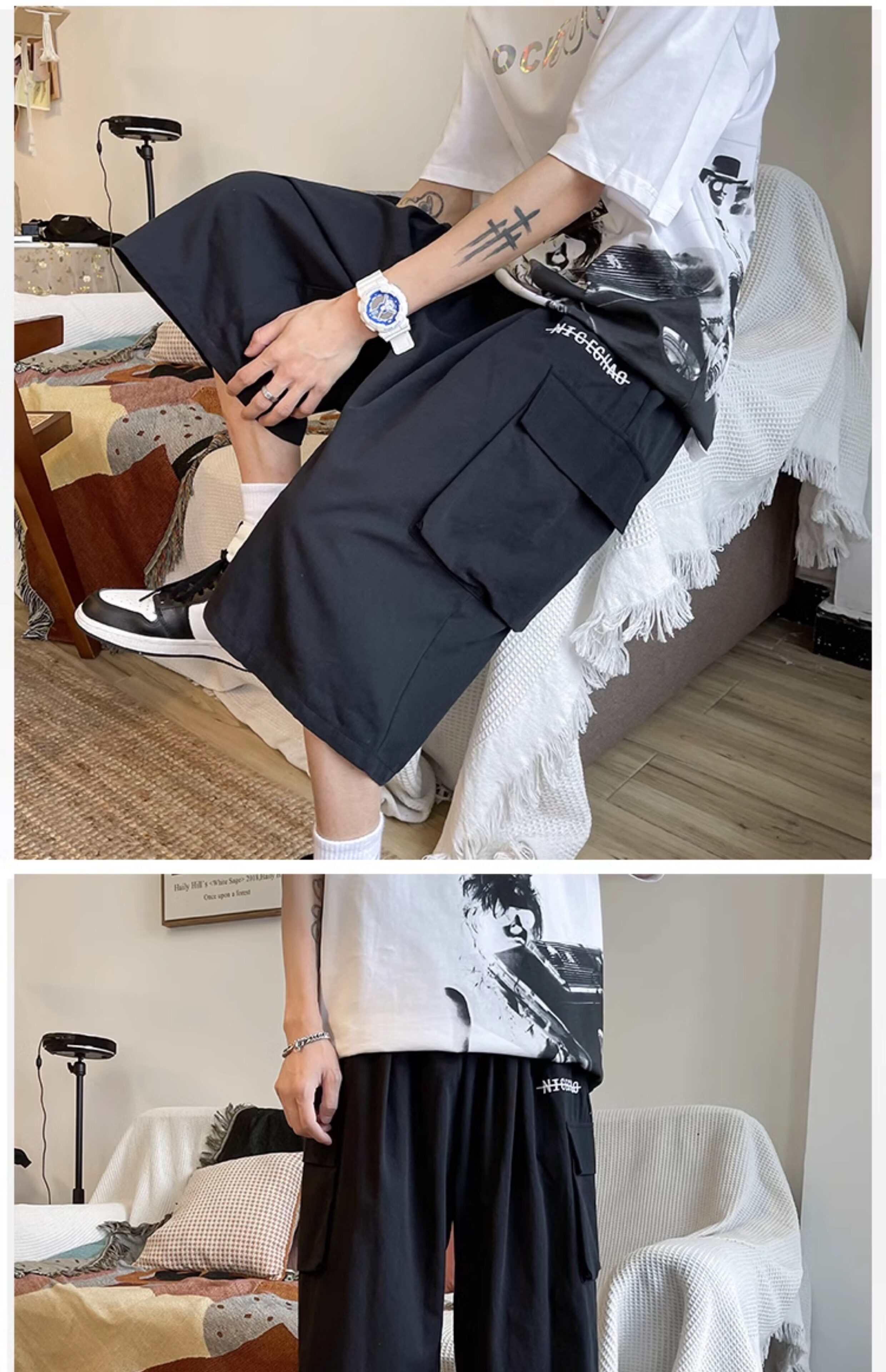 | Цвет: | Черный [прямые широкие ноги], Хаки, свободный крой, Темный хаки + черный [70% людей купили 𧹒], Хаки комплект, Черный комплект, черные штаны, футболка, размер, >Нажмите, чтобы посмотреть размер<По умолчанию это фото чёрное [Прямые широкие ноги], Глубокий хаки [карман гонгтона], Черный [Гонгтуо карман] |
