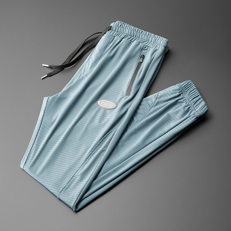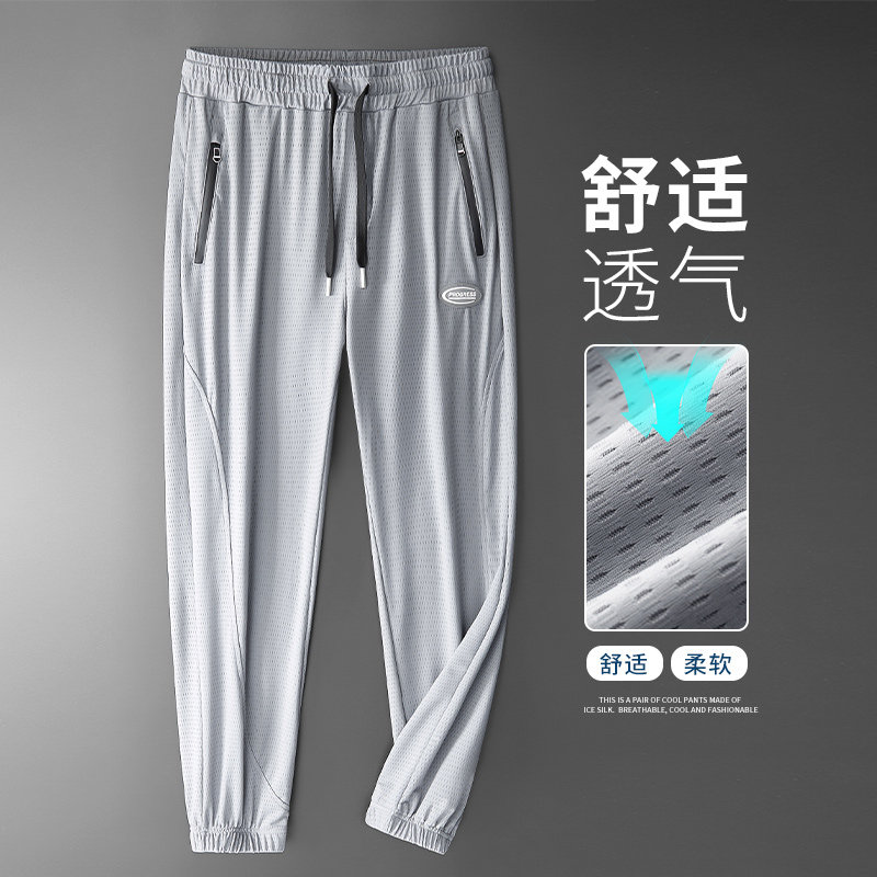 Летние тонкие шелковые мужские эластичные штаны, эластичная талия