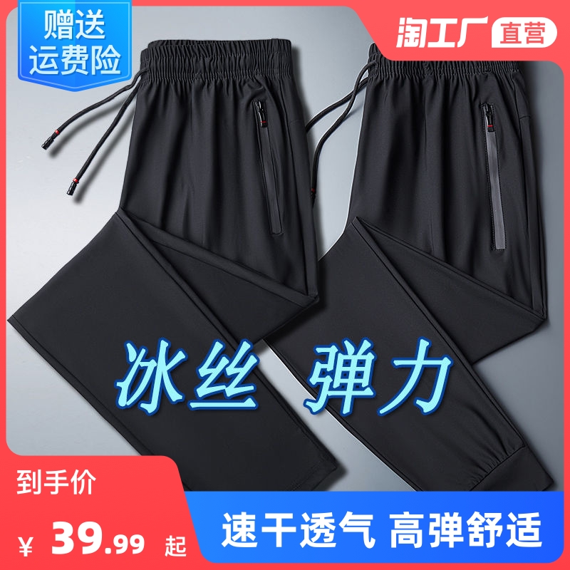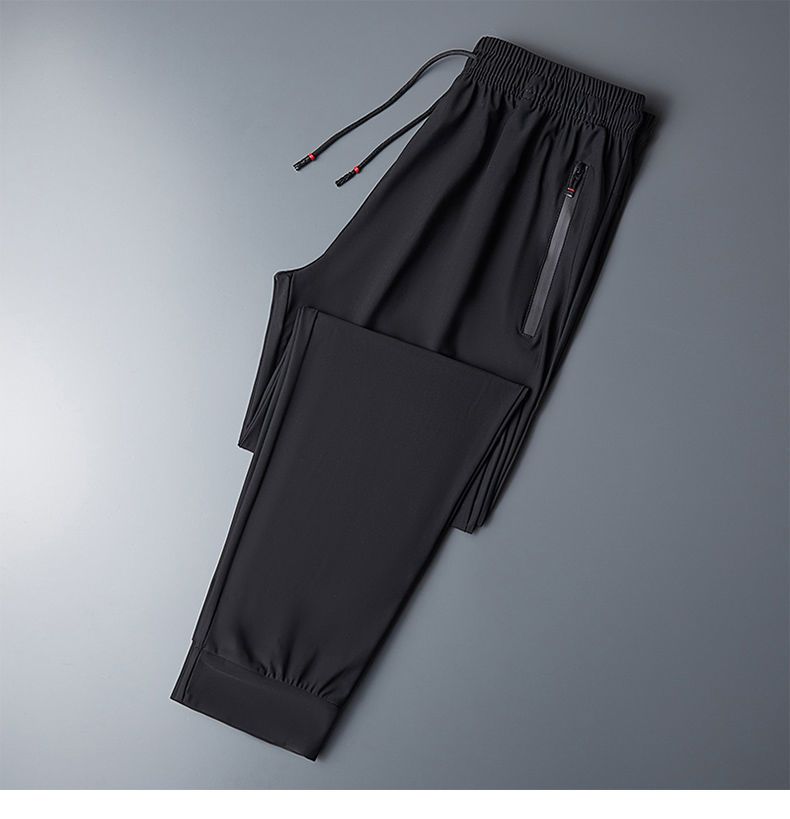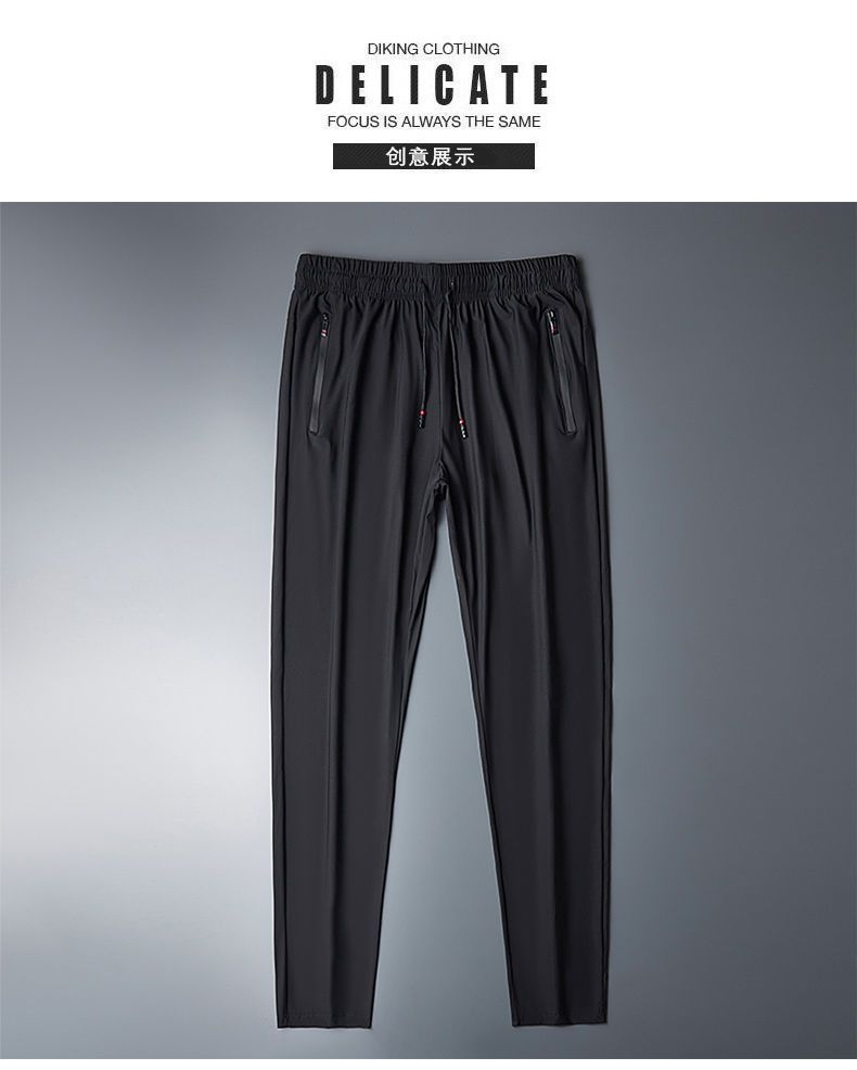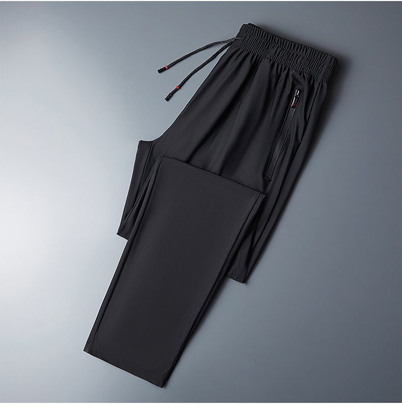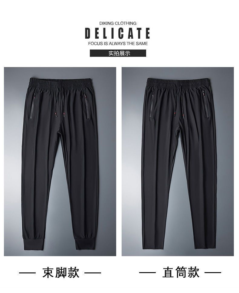Мужские шелковые летние тонкие штаны, трендовые быстросохнущие спортивные повседневные брюки для отдыха, свободный прямой крой