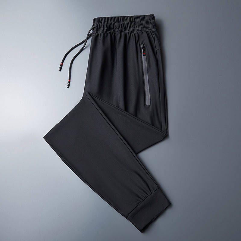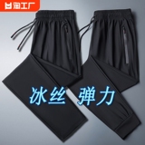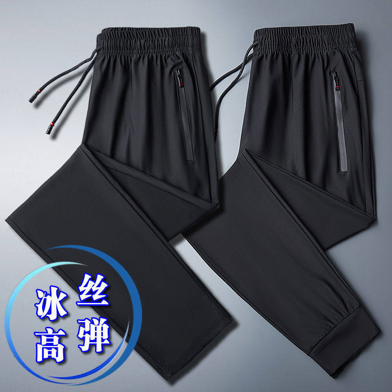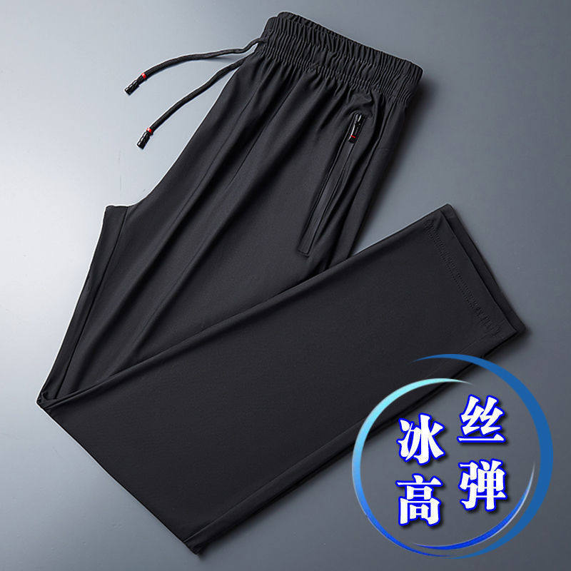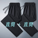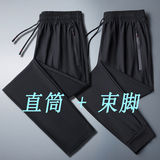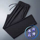 Мужские шелковые летние штаны, тонкие быстросохнущие спортивные высокие повседневные брюки для отдыха, свободный прямой крой
