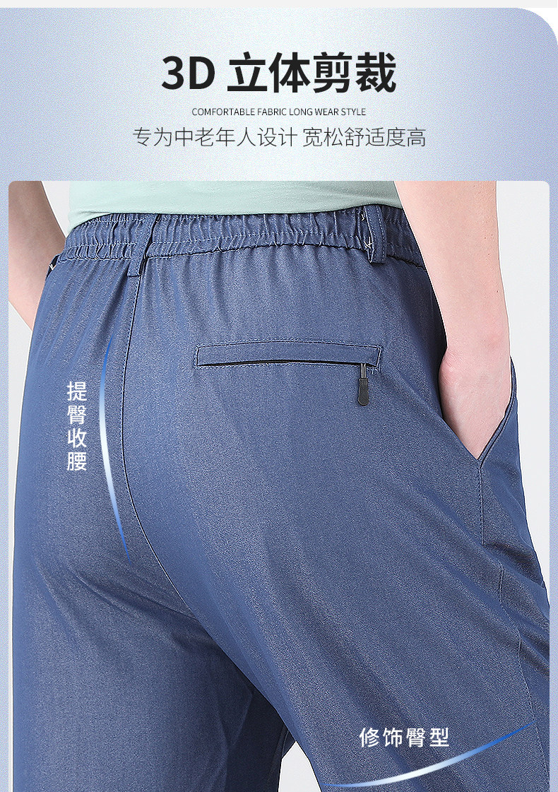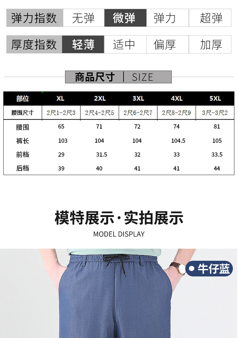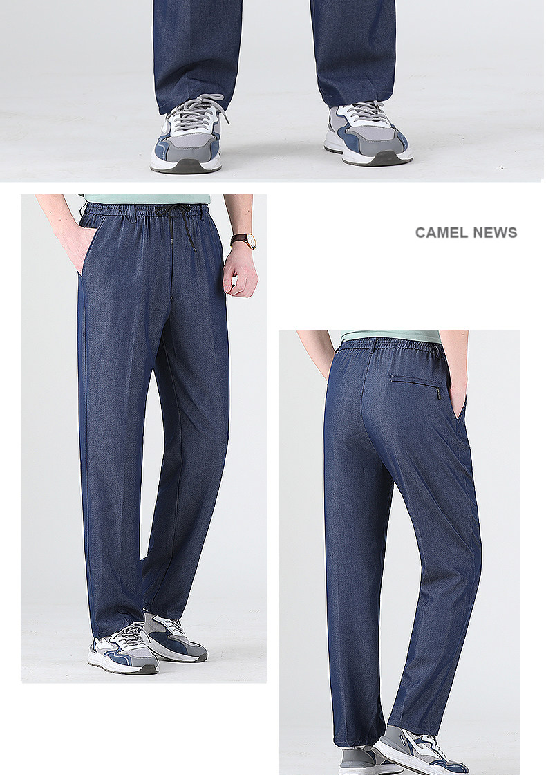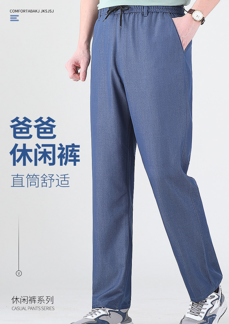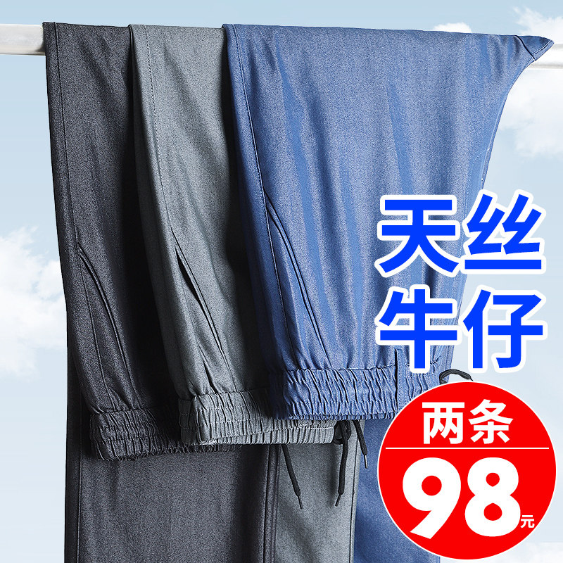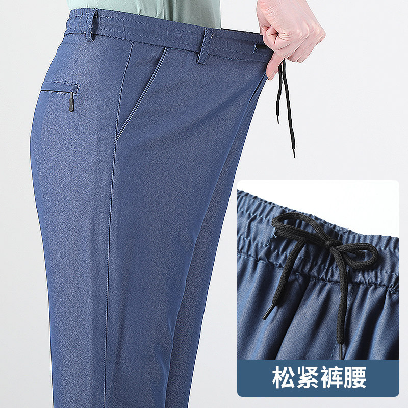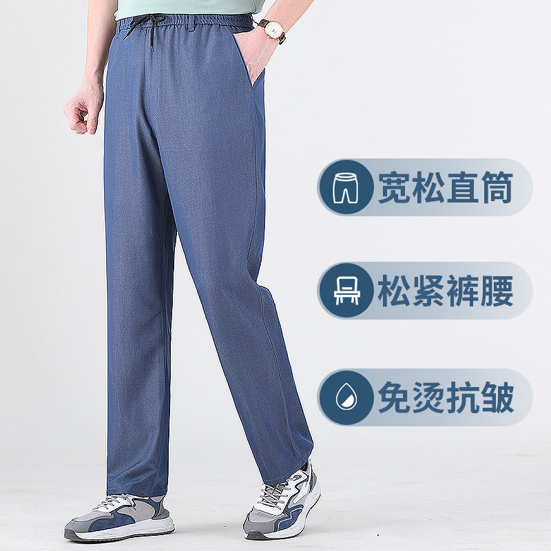 Летние штаны, мужские тонкие джинсы для отдыха, для среднего возраста, эластичная талия, оверсайз
