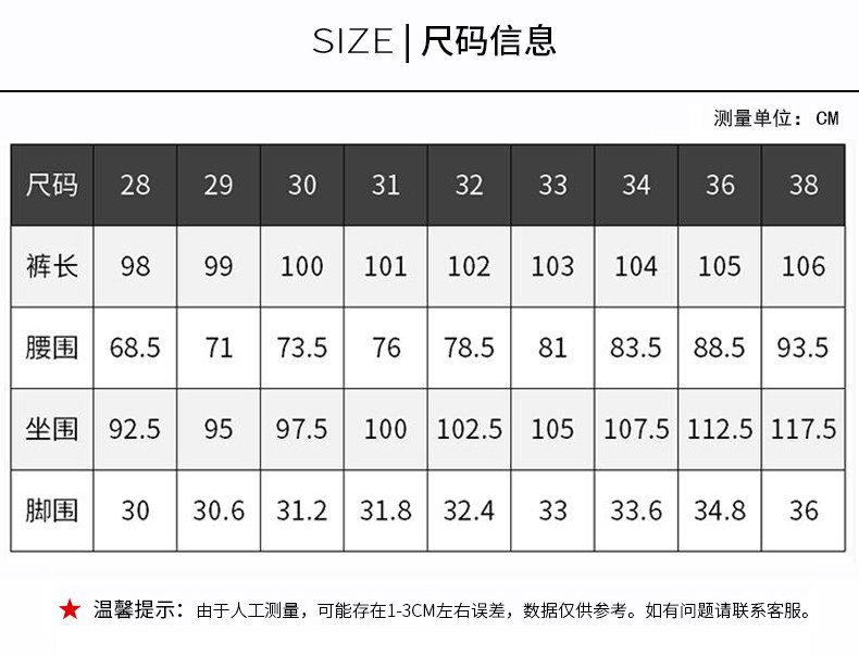 | Размер: | 28 Рекомендуется [90-105 Catties], 29 Рекомендуется [110-115 Catties], 30 рекомендуется [115-120 Catties], 31 рекомендуется [125-130 Catties], 32 Рекомендуется [135-140 Catties], 33 Рекомендуемых【140-155 кошек】, 34 Рекомендуется [155-160 Catties], 36 Рекомендуется [165-170 Catties], 38 Рекомендуется [175-190 Catties] |