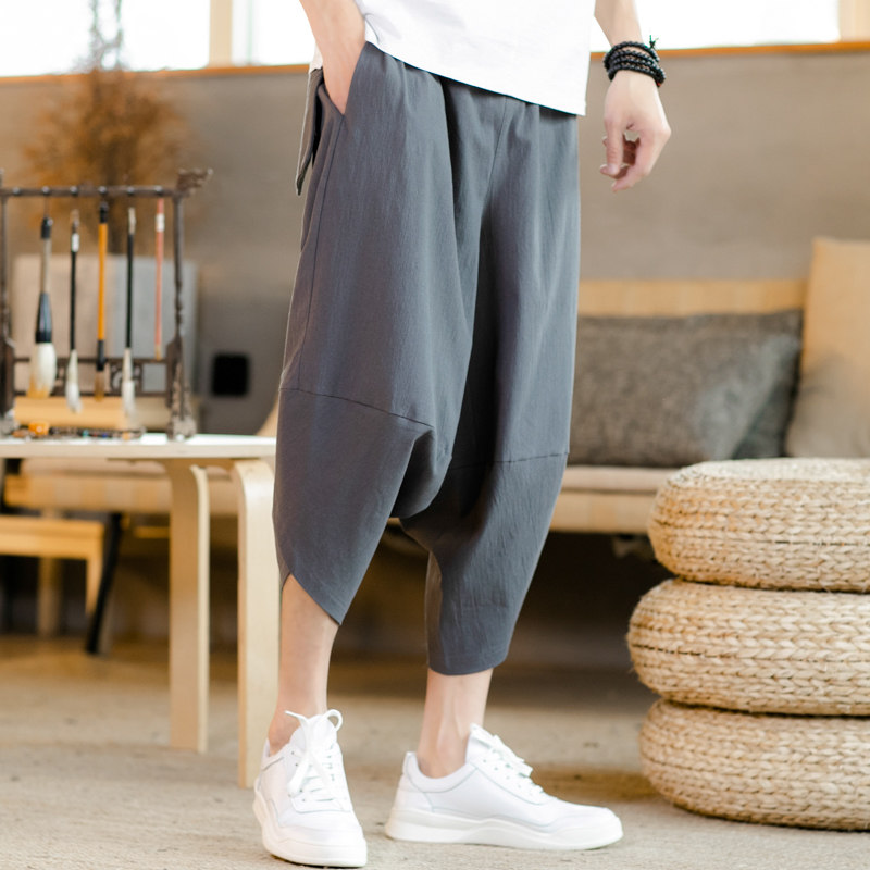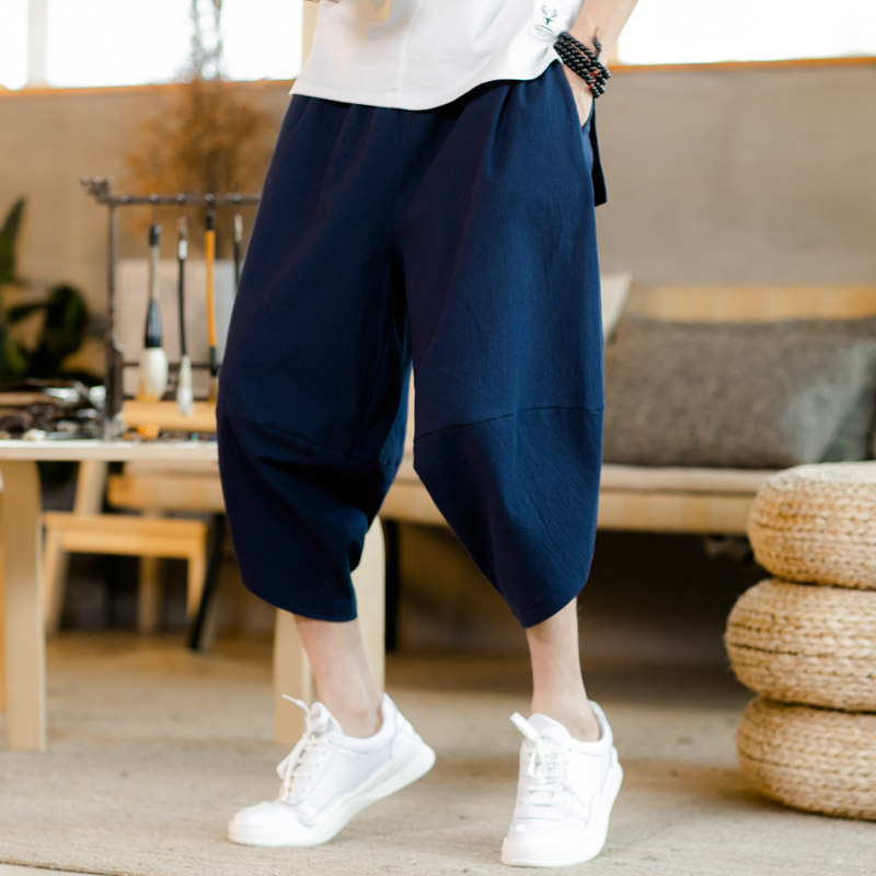 Летние цветные ретро штаны, из хлопка и льна, китайский стиль, большой размер