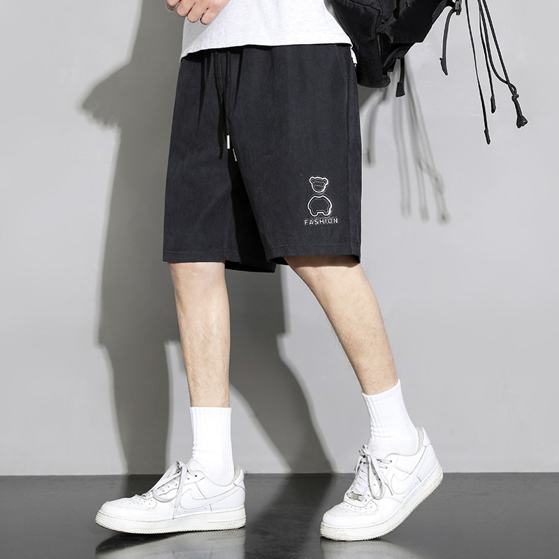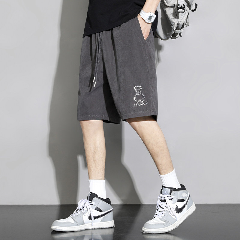 Мужские шелковые летние тонкие шорты, баскетбольные пляжные штаны для отдыха, свободный прямой крой, с медвежатами