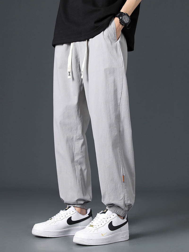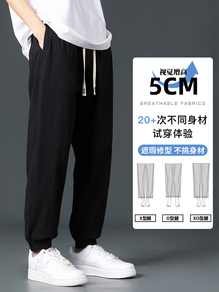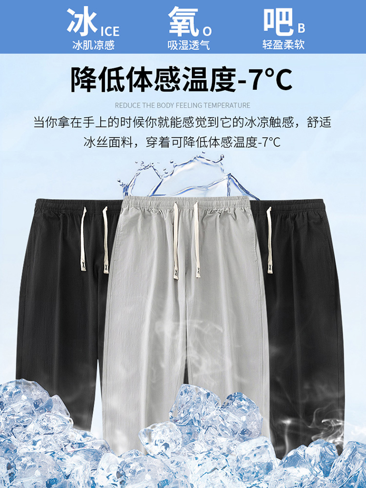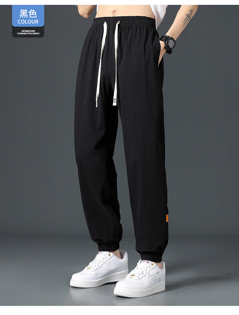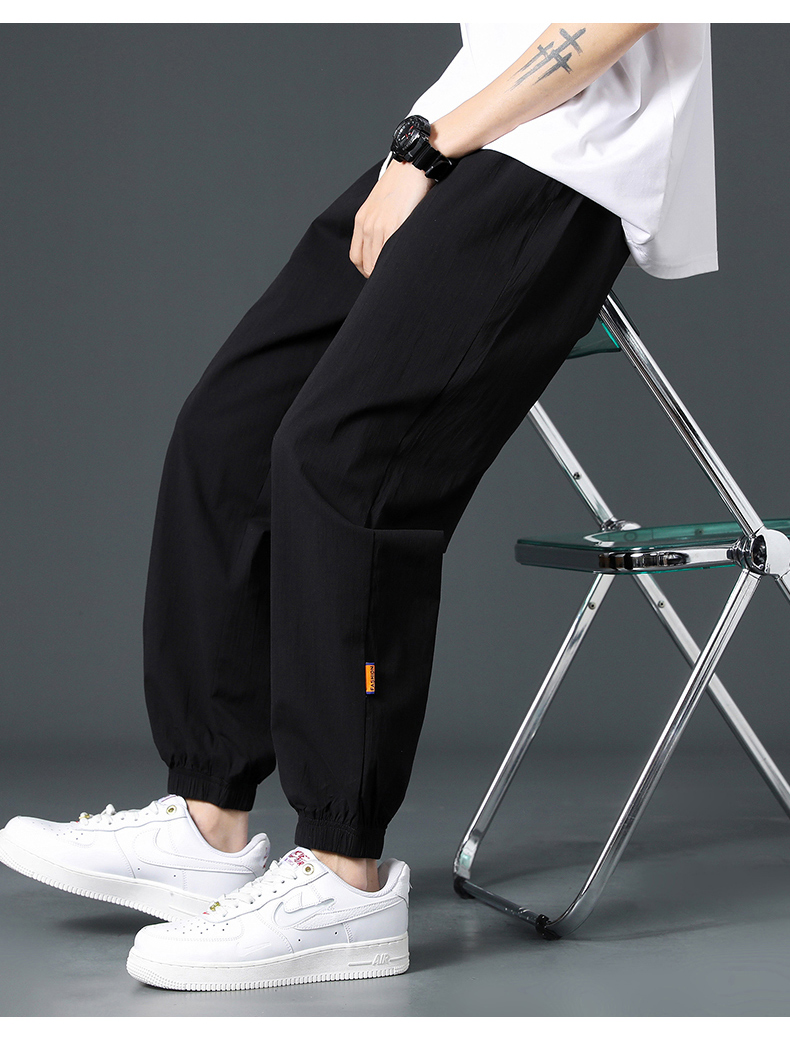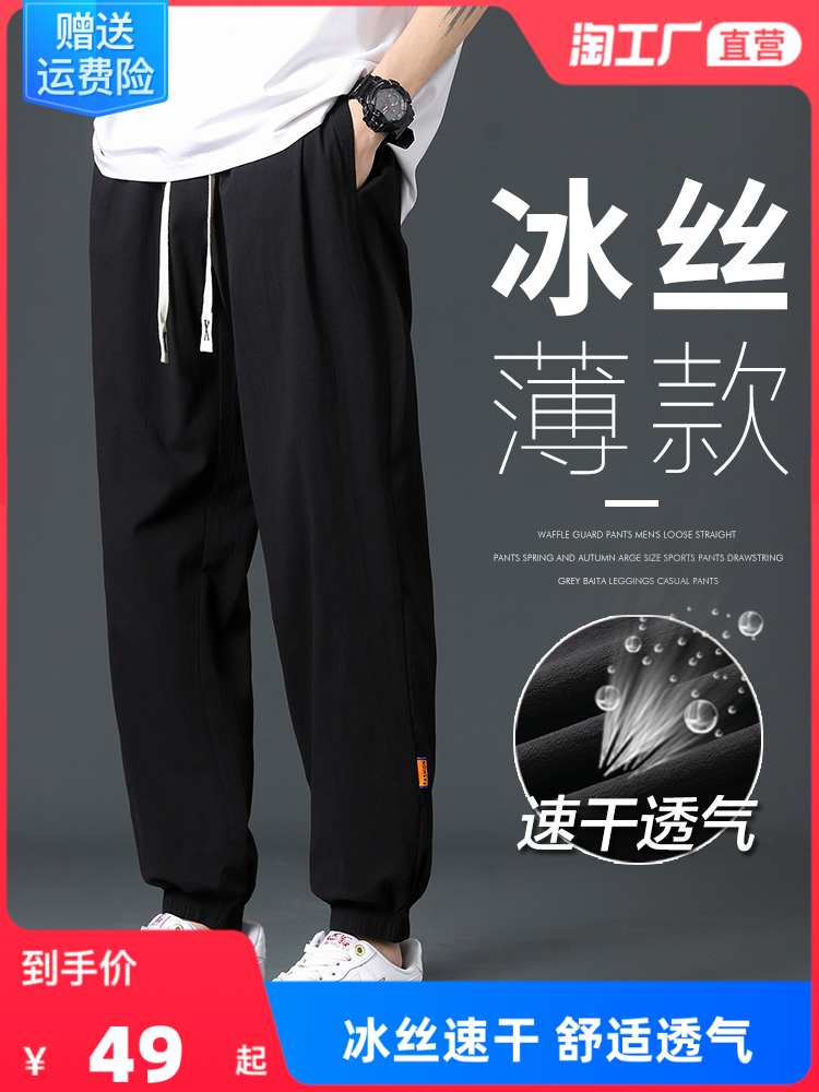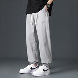 Мужские летние тонкие шелковые спортивные штаны, оверсайз, свободный крой, из хлопка и льна