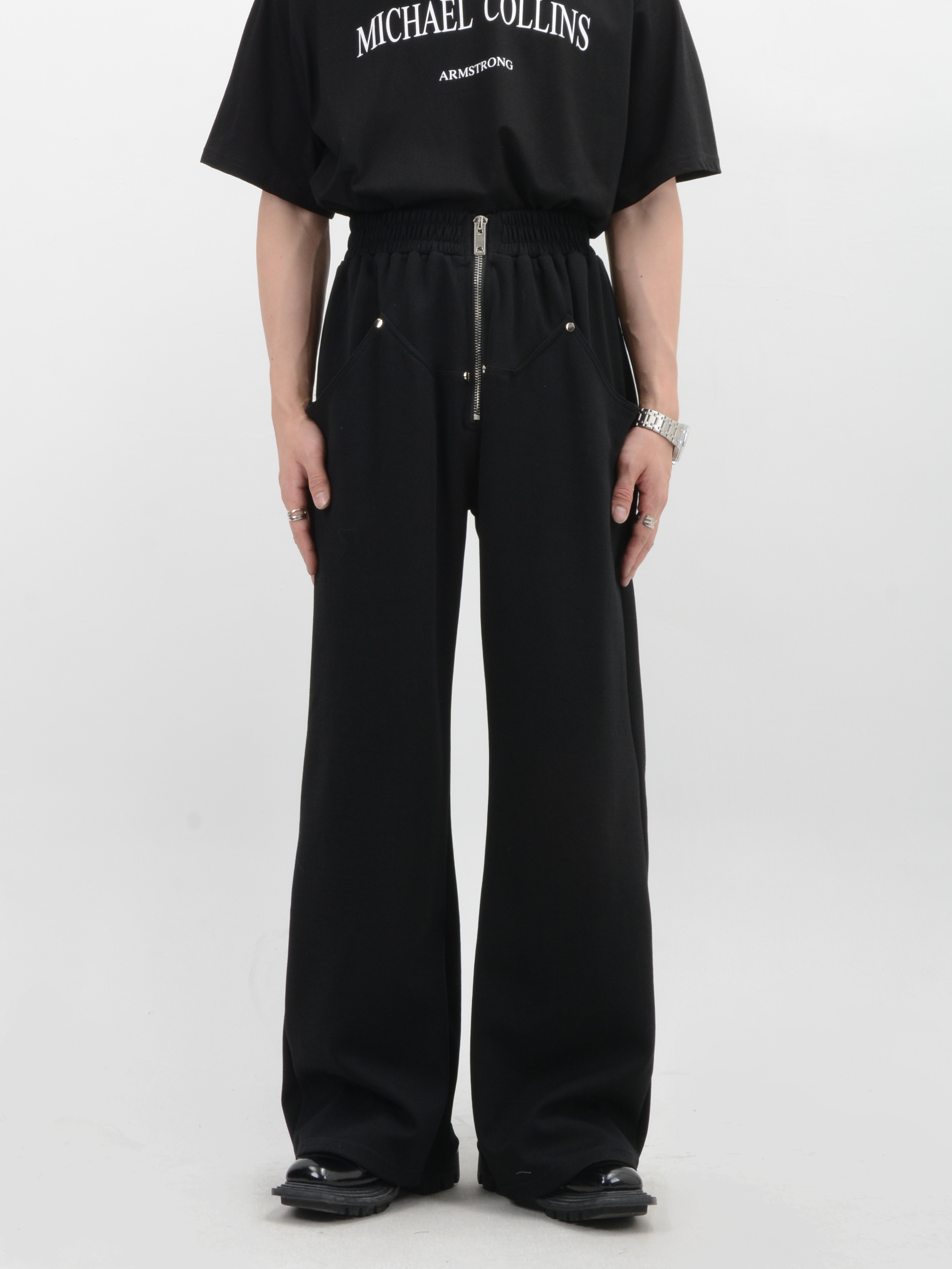 Небольшие дизайнерские ретро черные штаны, высокая талия, оверсайз, свободный прямой крой