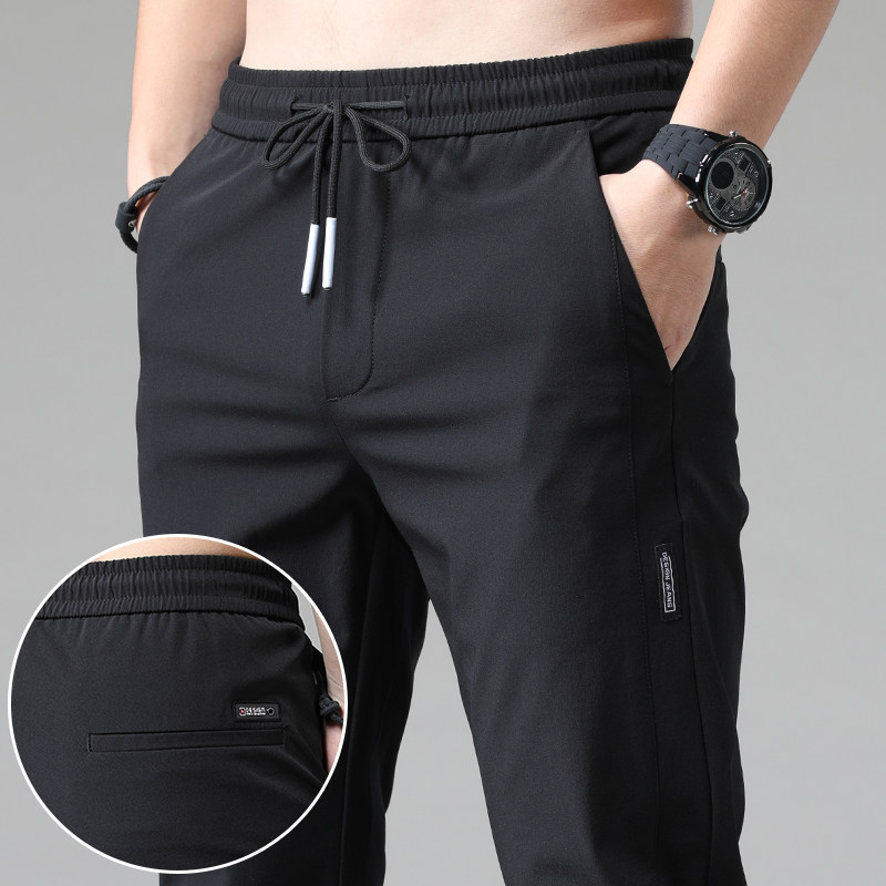 Мужские летние штаны, черный приталенный трендовый комбинезон, эластичная талия, свободный прямой крой, в корейском стиле