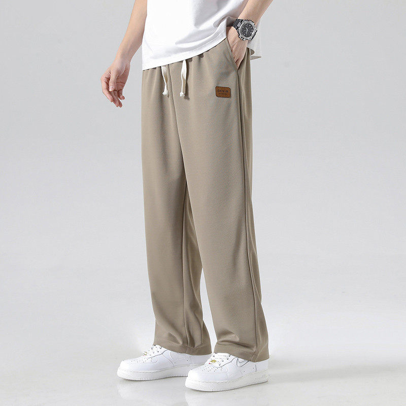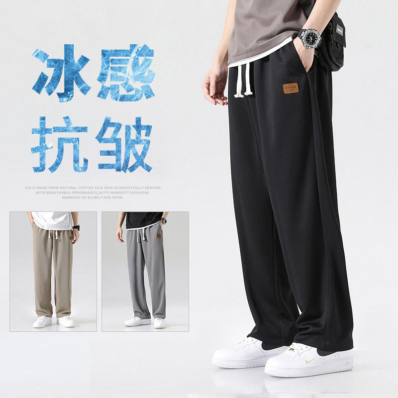 Летние мужские спортивные тонкие шелковые штаны, свободный прямой крой, большой размер