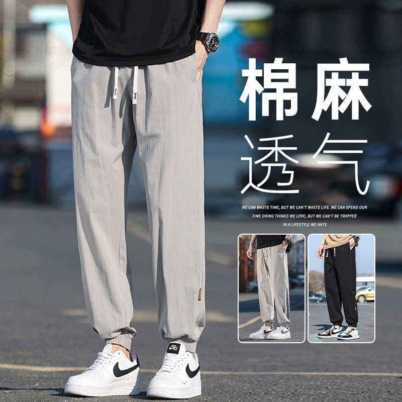 Мужские шелковые летние тонкие штаны, из хлопка и льна, коллекция 2023, подходят для подростков, свободный прямой крой